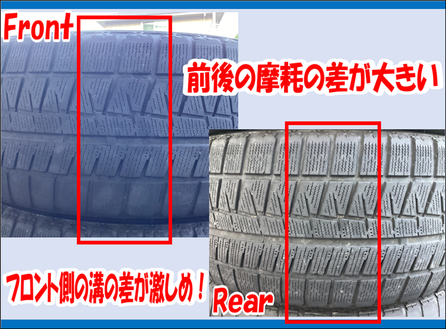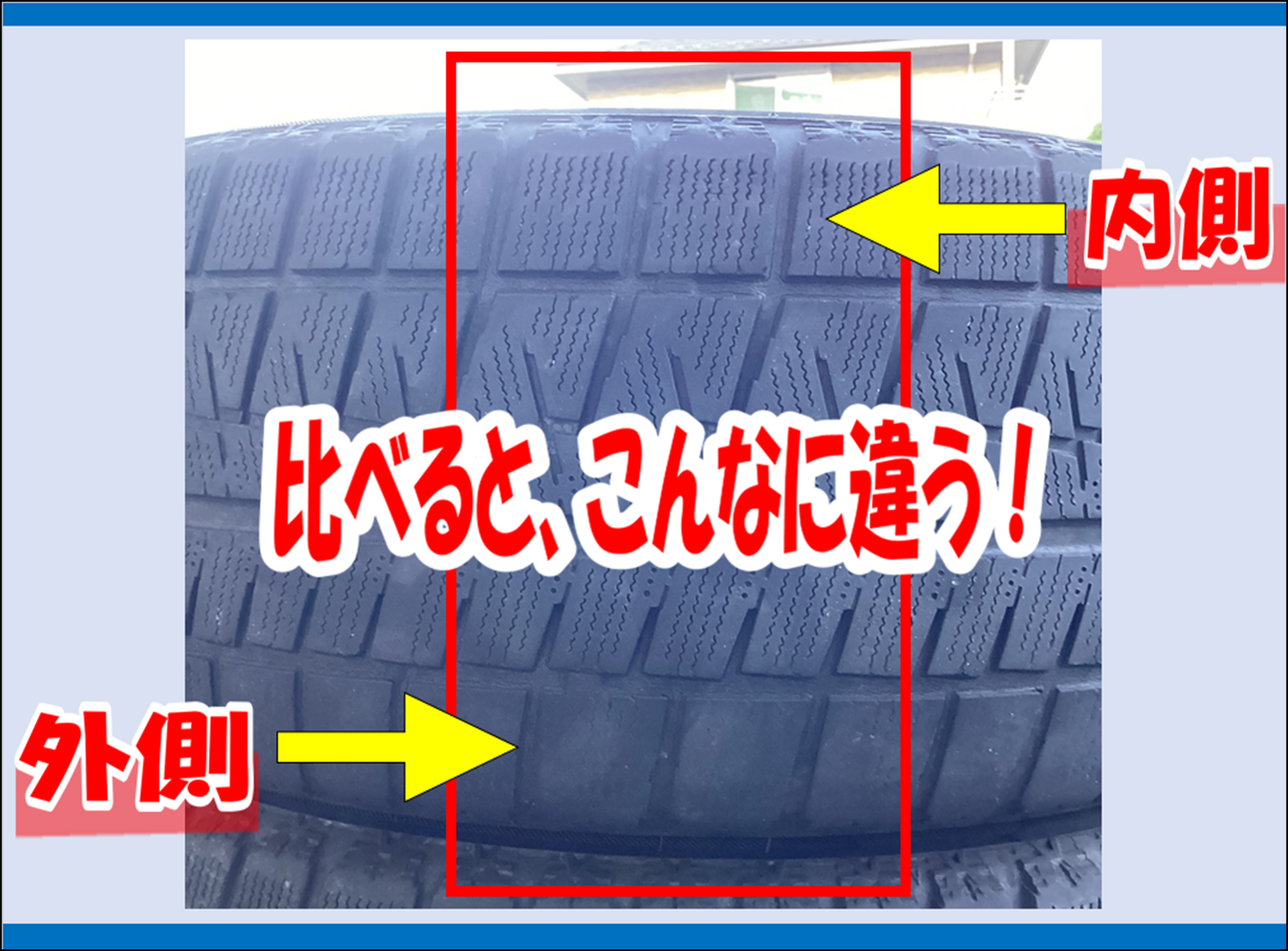 こんなにもタイヤの溝の減り方に差が出ちゃうんです。