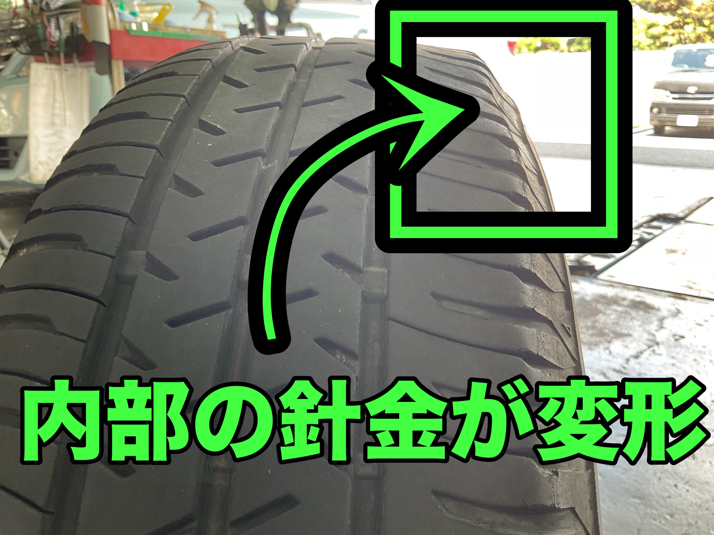 タイヤを外して見て見るとタイヤが変形していました、、、