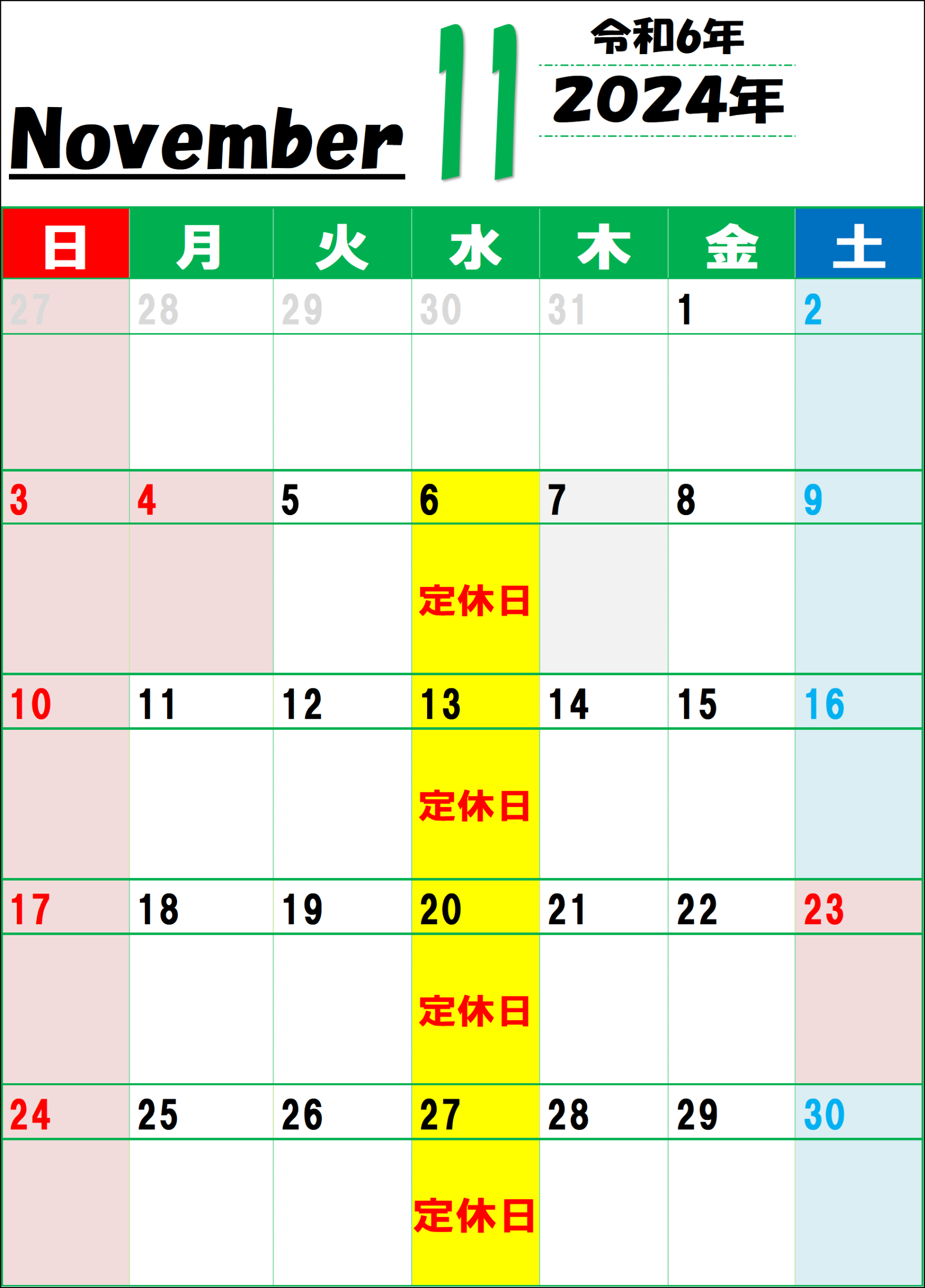 ▶▷▶2024年11月の定休日をご案内致します~♬