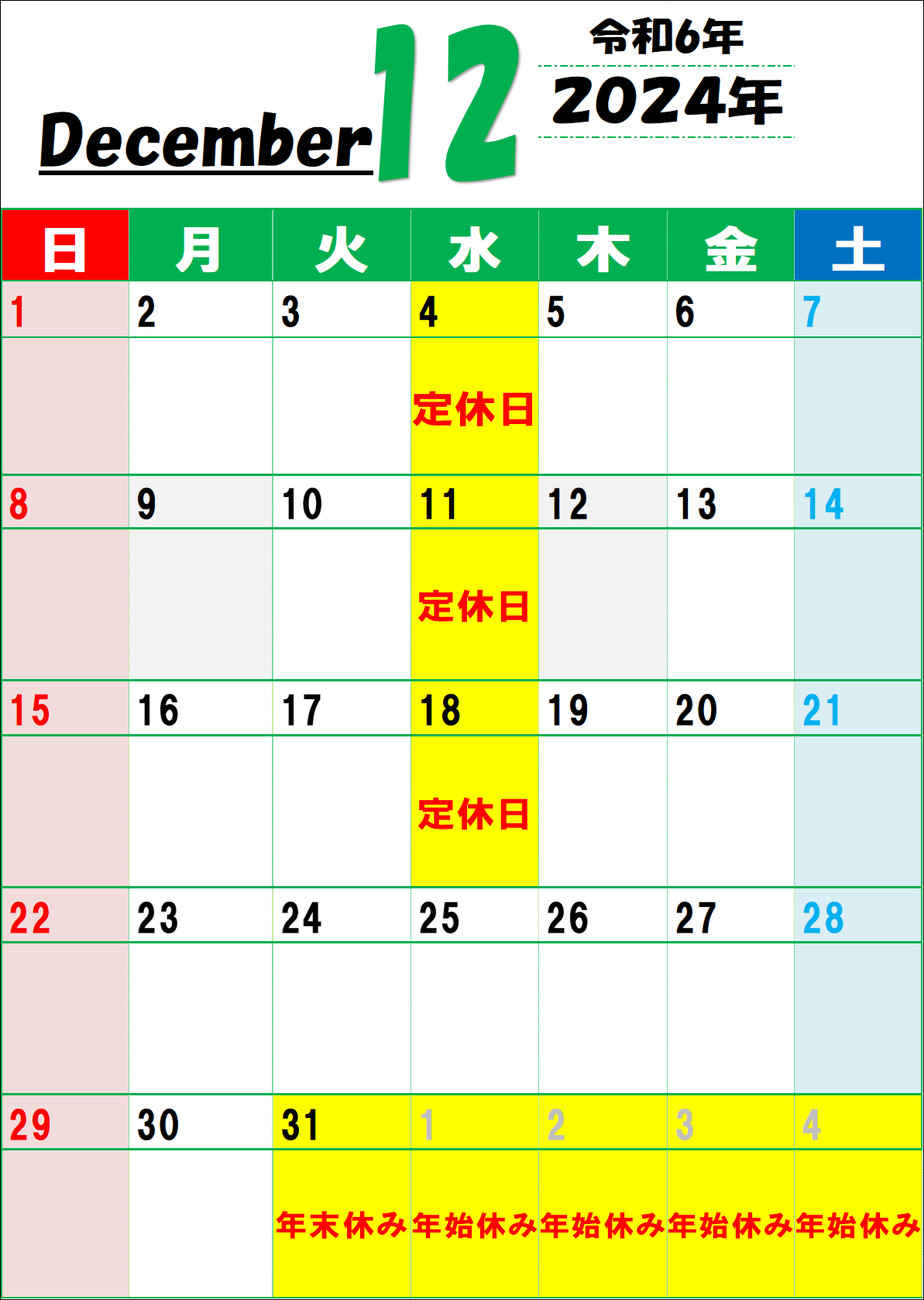▶▷▶2024年12月の定休日をご案内致します~♬