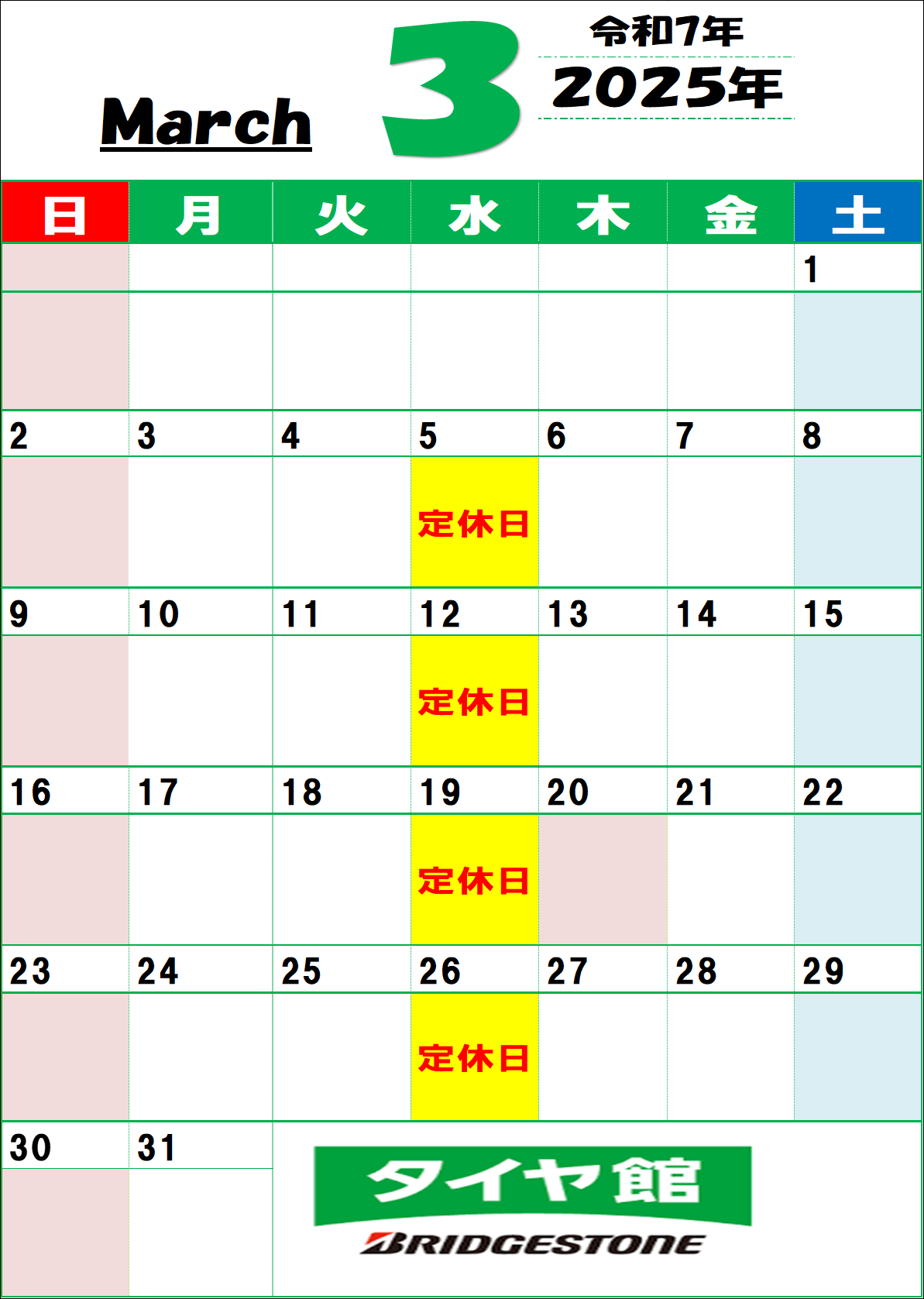 ▶▷▶2025年3月の定休日をご案内致します~♬