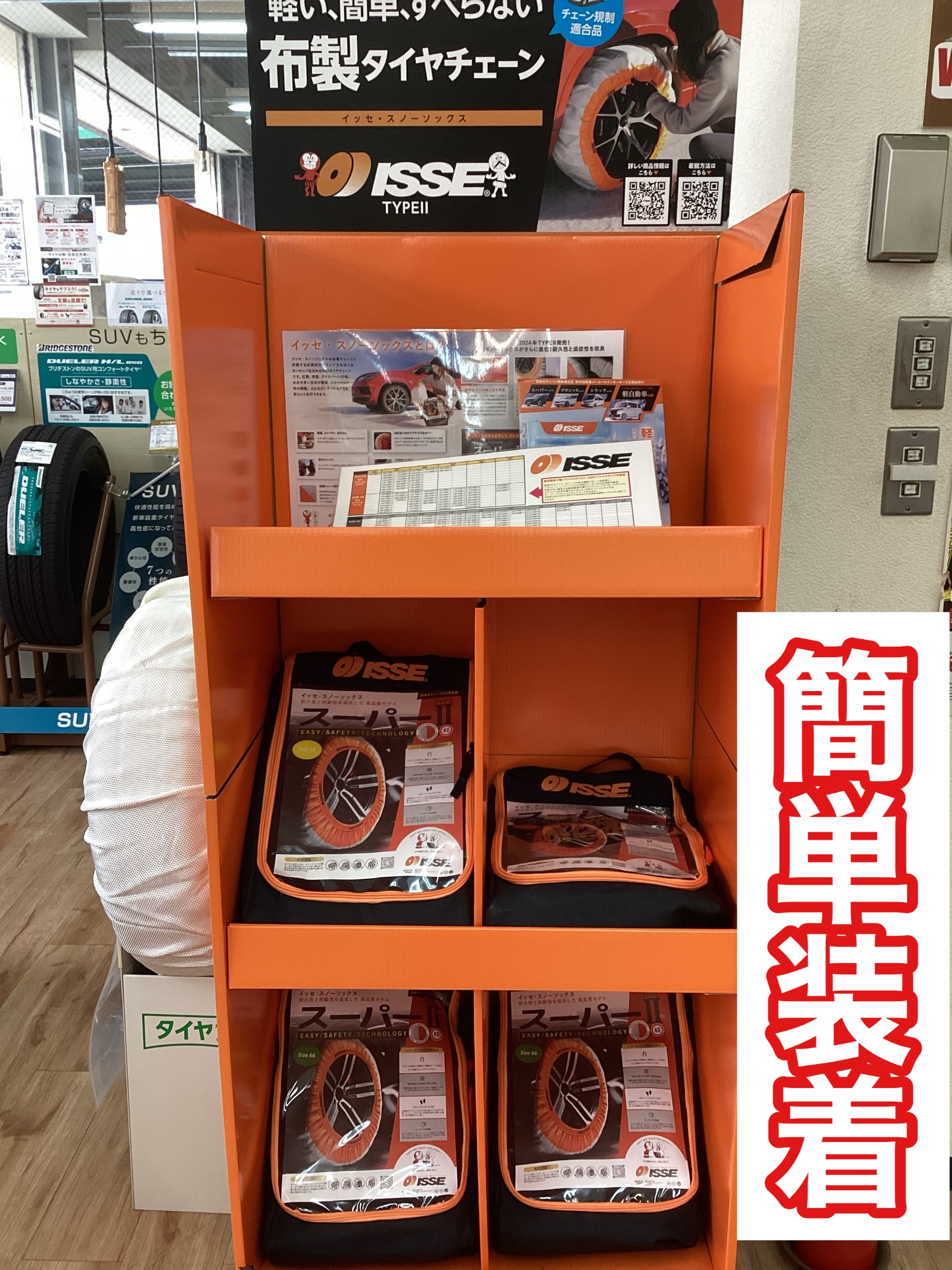 ジャッキアップ不要で簡単装着!コンパクトで軽い!金属製チェーンと同等の性能!