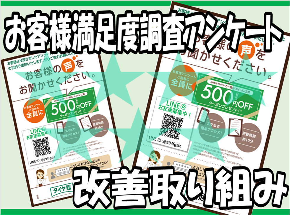 タイヤ館関越練馬では、タイヤ館で行っている「お客様満足度調査アンケート」の
