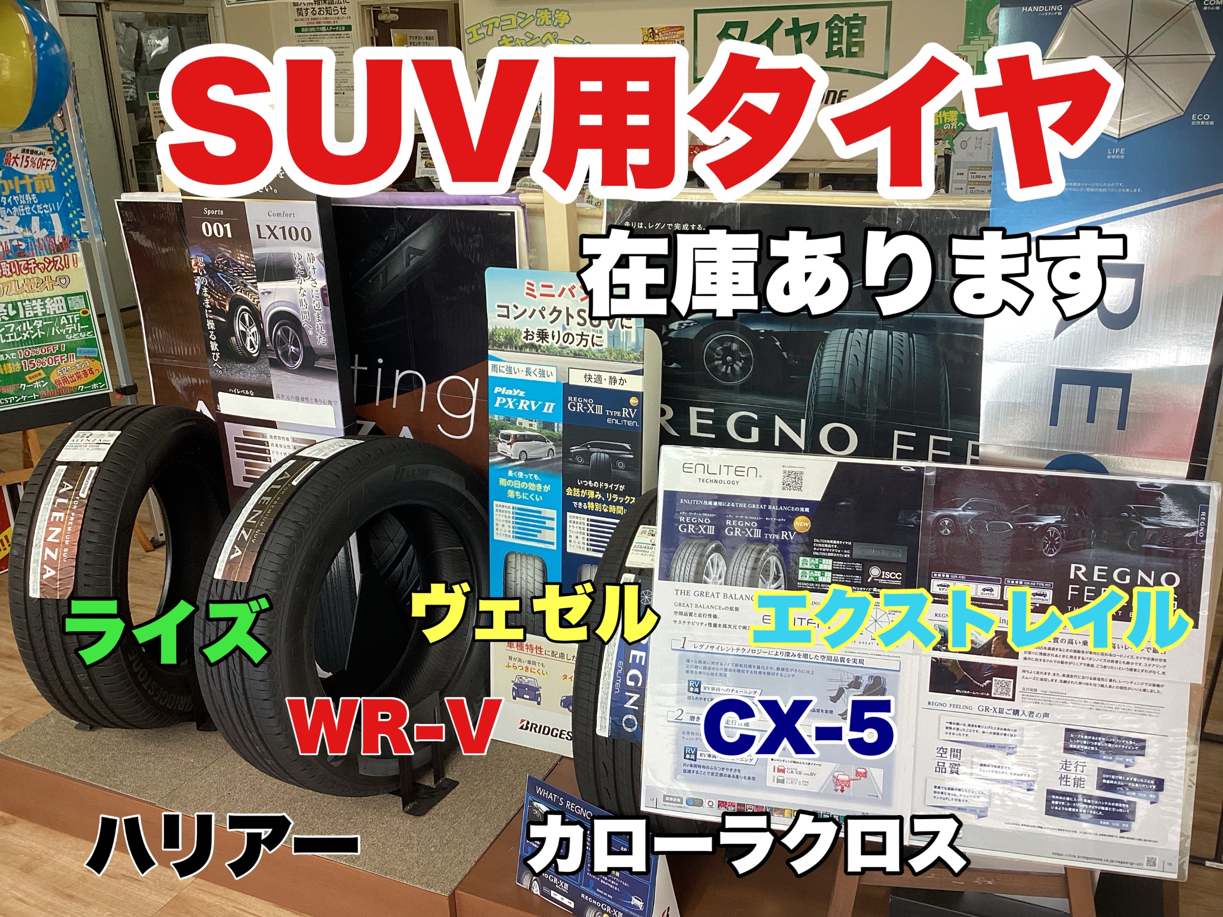 大人気のSUV、ライズ・ハリアー・カローラクロス・エクストレイル・WR-V・CX-5・ヴェゼル等 タイヤ交換やタイヤのトラブルに困ったら、在庫豊富なタイヤ館関越練馬にご来店ください!