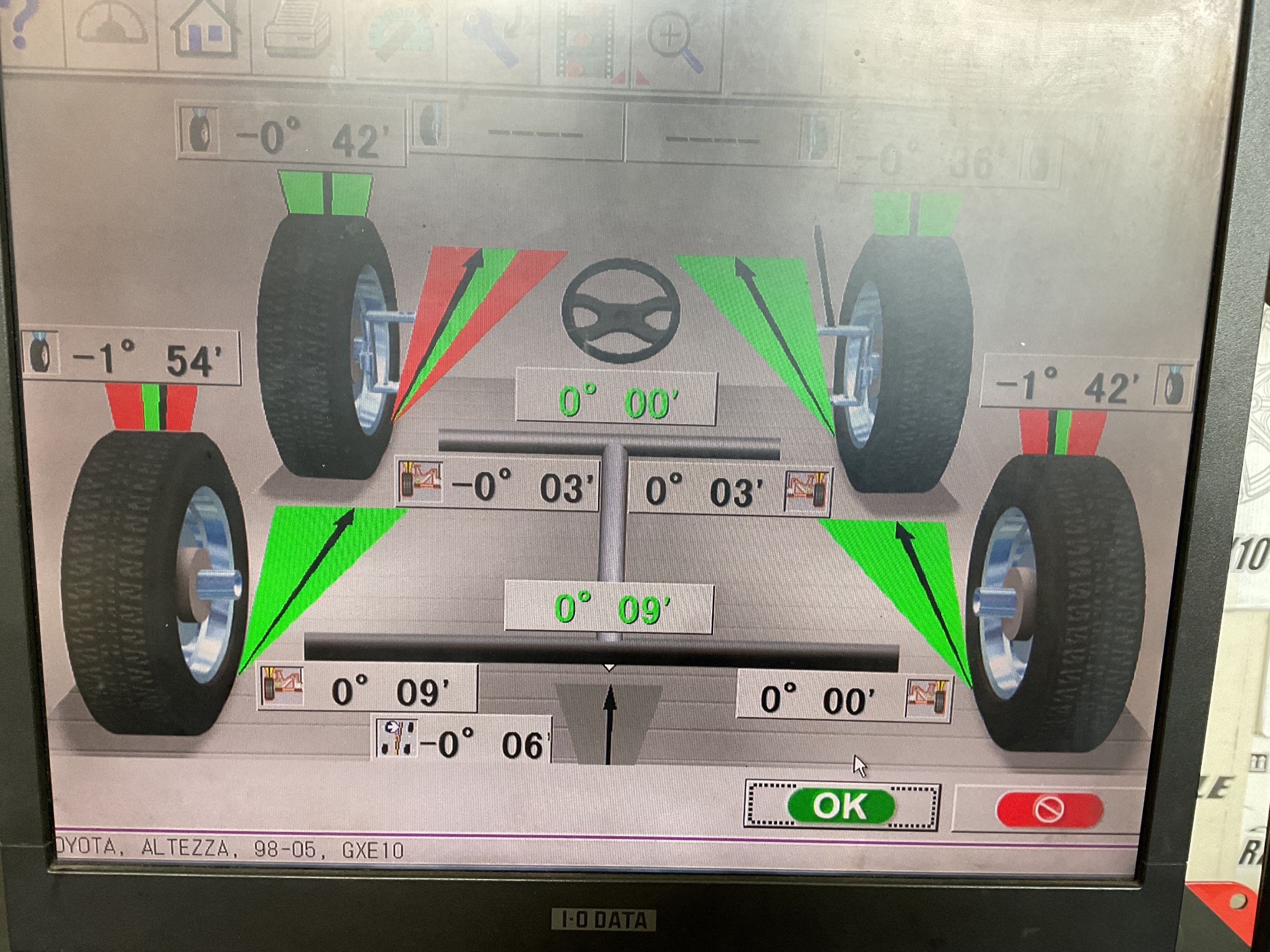 今回のアルテッツァも、基準値内ですがズレておりました。