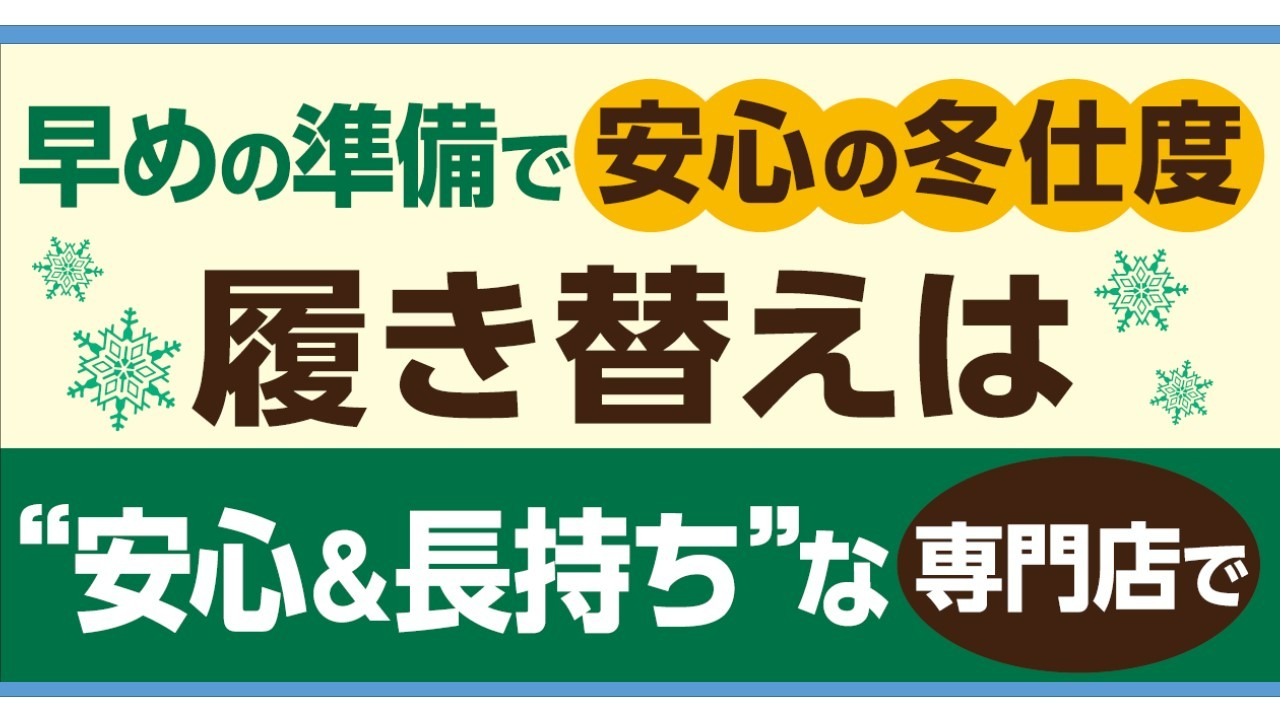 走行距離が多い方(年間1万㎞以上)等を除き、脱着は12月でと毎年同時期の取付を考え直してみませんか?早めの履き替えなら急な降雪にも安心!!