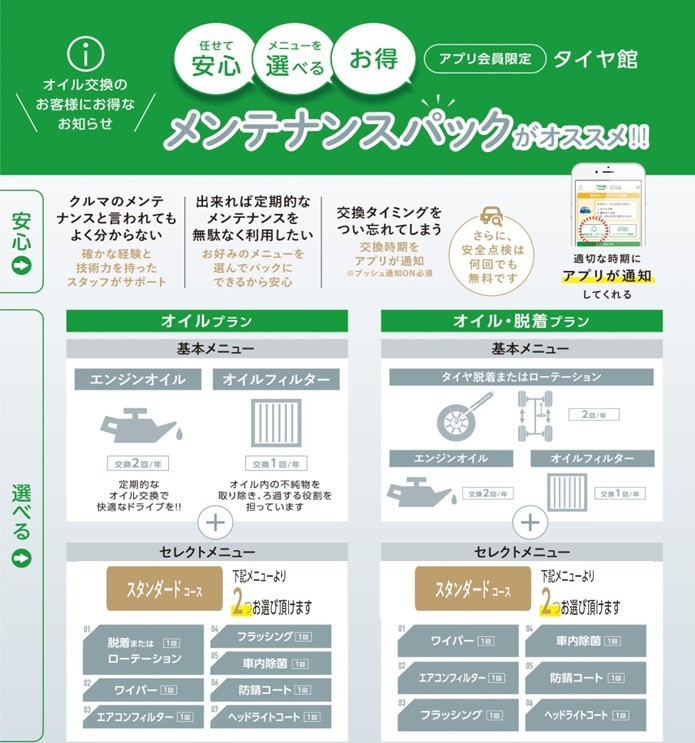 タイヤ館のお得な『メンテナンスパック』ご存じですか?