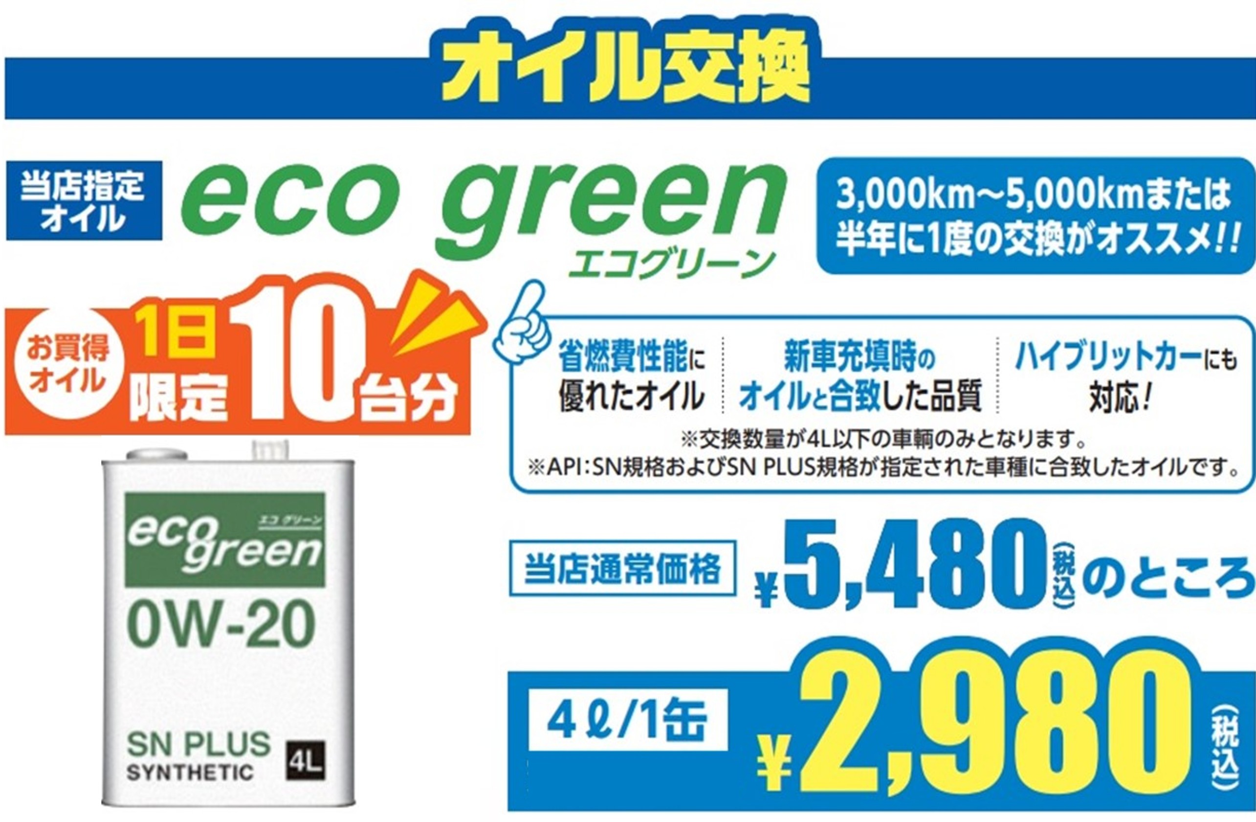 お買い得エンジンオイル『eco green』あります!
