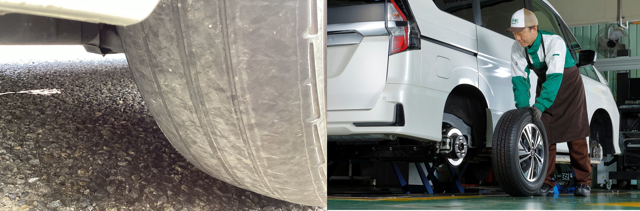 タイヤは、道路の状態や走り方などにより、一部分や片側だけがすり減ってしまうことがあります。
