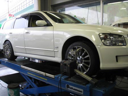 日産 ステージアのタイヤ交換&アライメント調整のご紹介です。