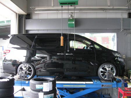 先日、20インチのタイヤ&ホイールをお取付させていただいたヴェルファイアのアライメント調整を行いました!