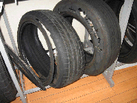 空気が徐々に漏れ、極端な低空気圧のまま走行を続ける事のより、タイヤサイド部のコードが周状に切れてしまう損傷のことです。