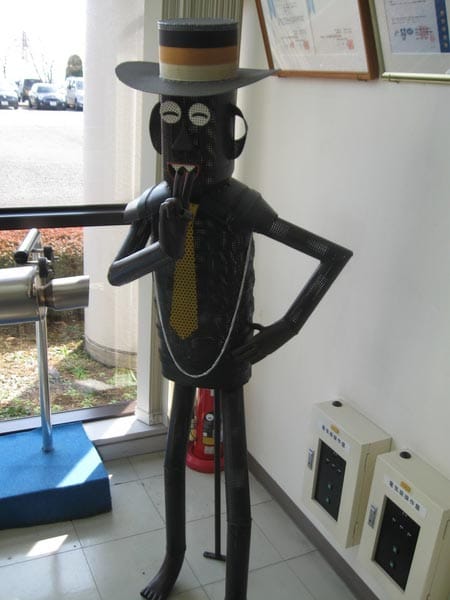 受付けの所にパイプで作ったちょっと変わった人形がありました!!