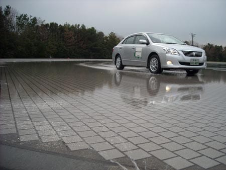 圧巻だったのが、スキッドパッドという水浸しのタイル地の路面の走行。