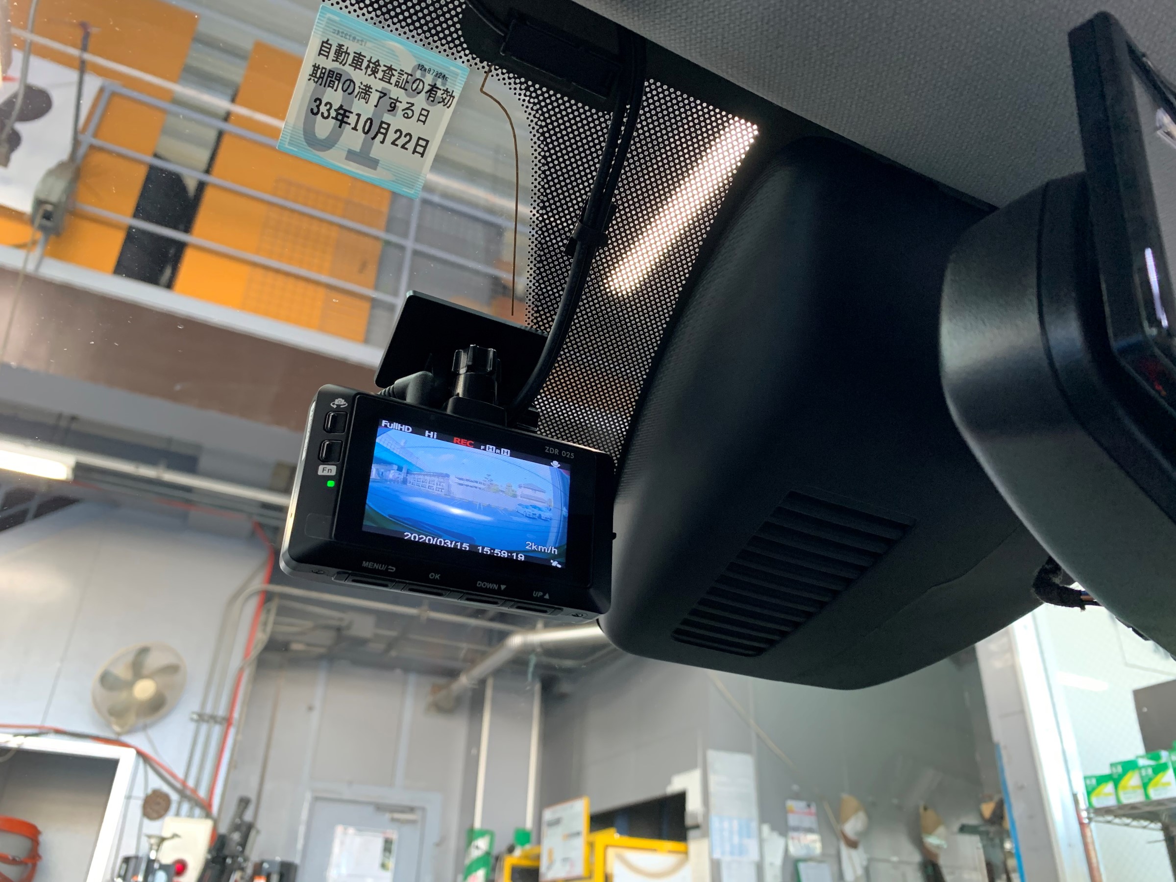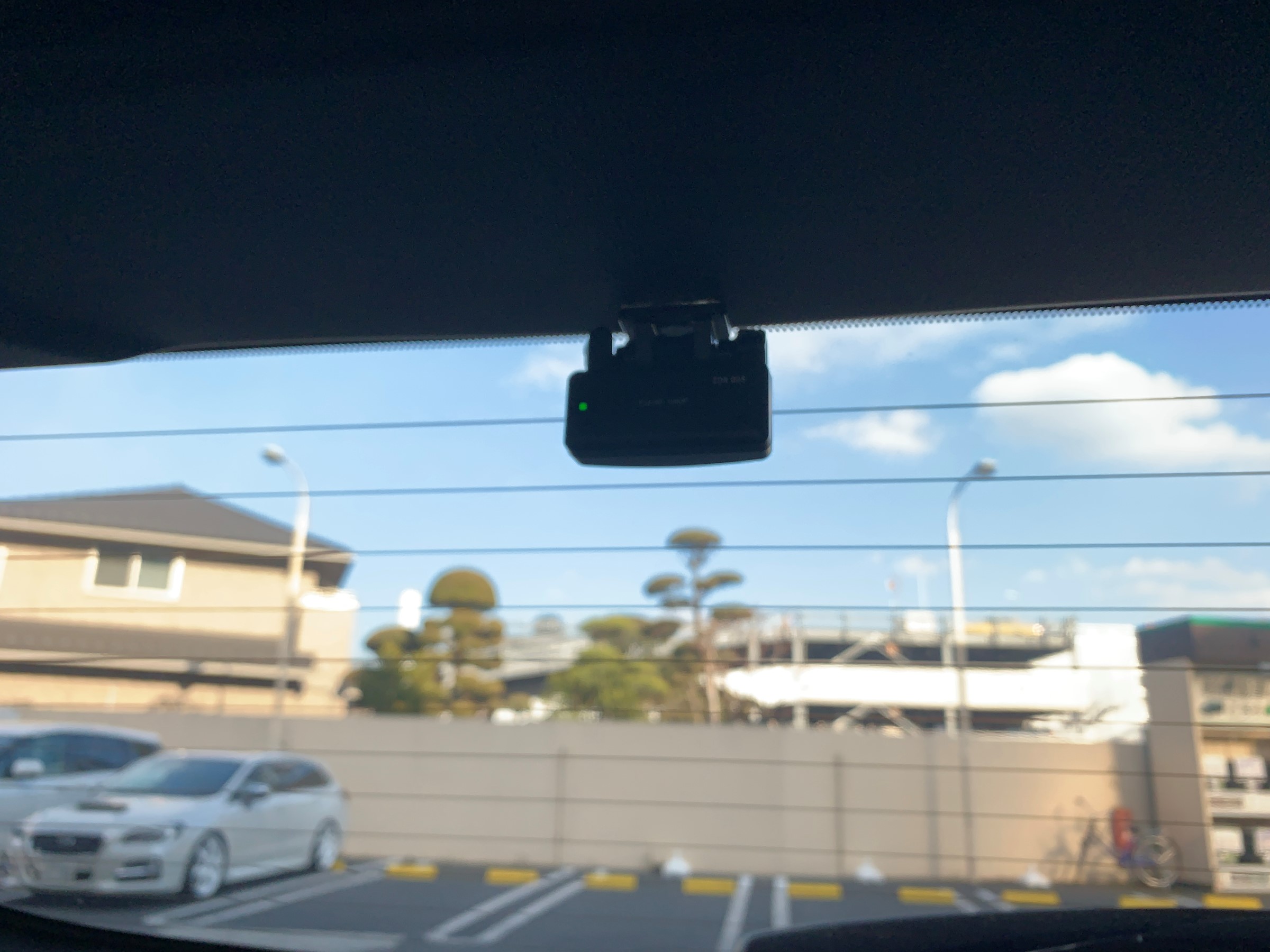 ドラレコのフロント側は衝突安全のカメラ横で運転手から目に入りにくいミラー裏にしました!