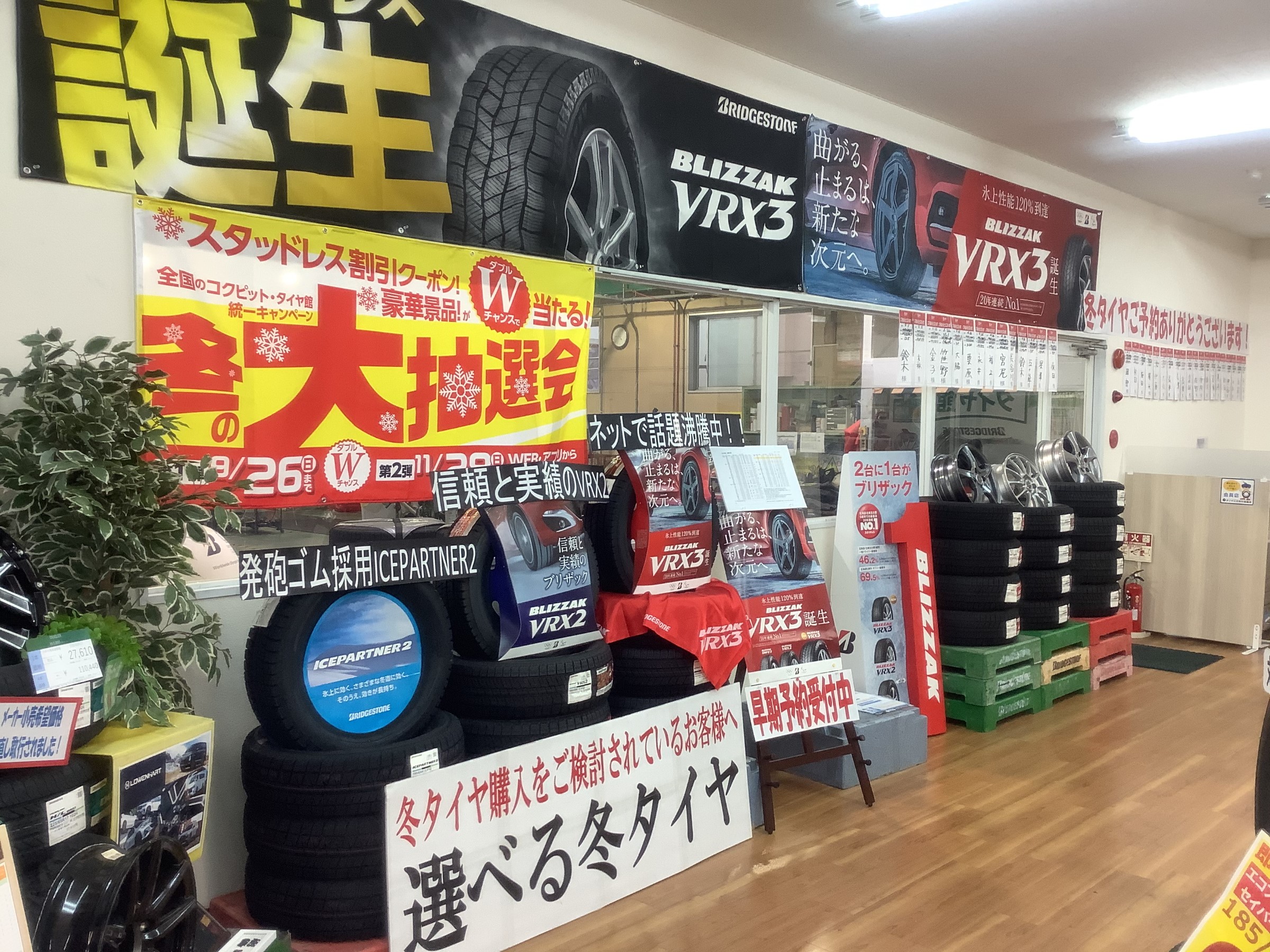 スタッドレスタイヤ冬タイヤの店内展示が始まりました。
