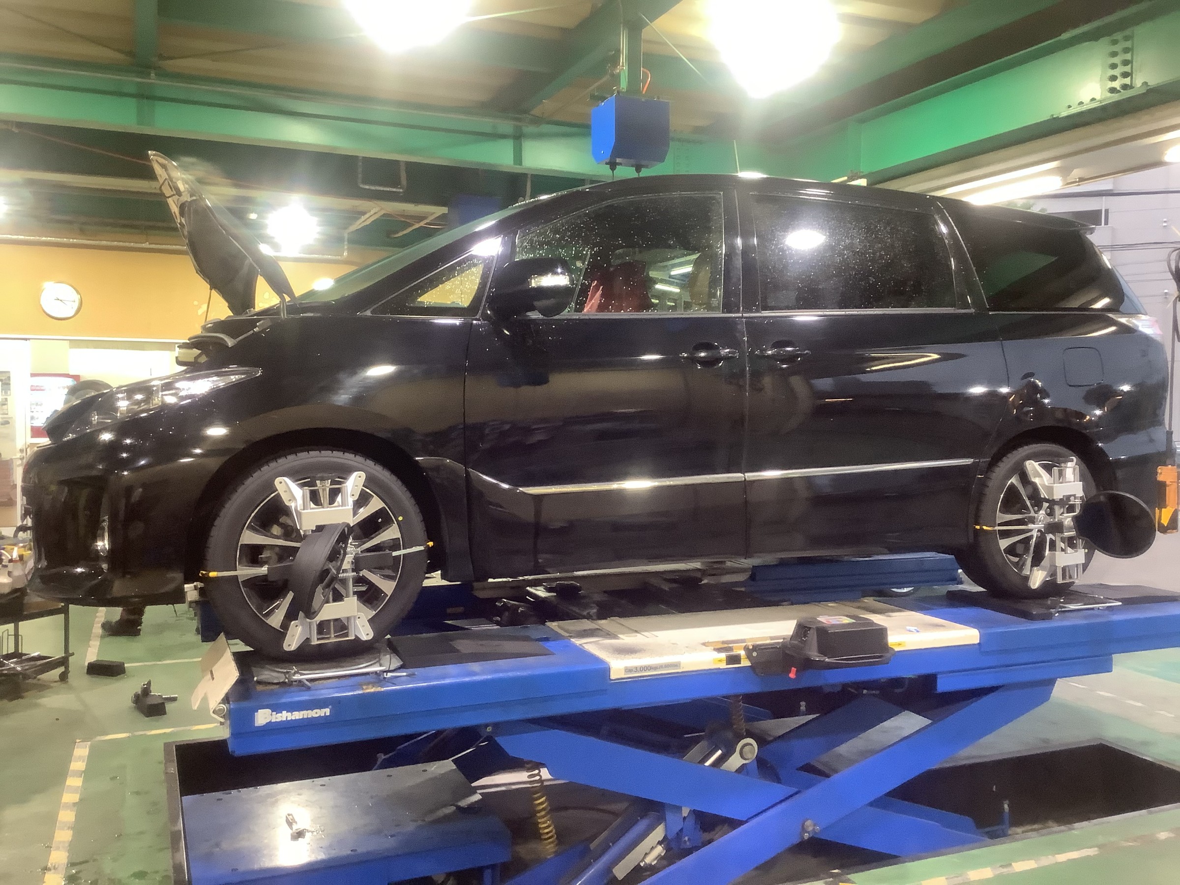 本日は、トヨタエスティマのアライメント調整作業のご紹介です!