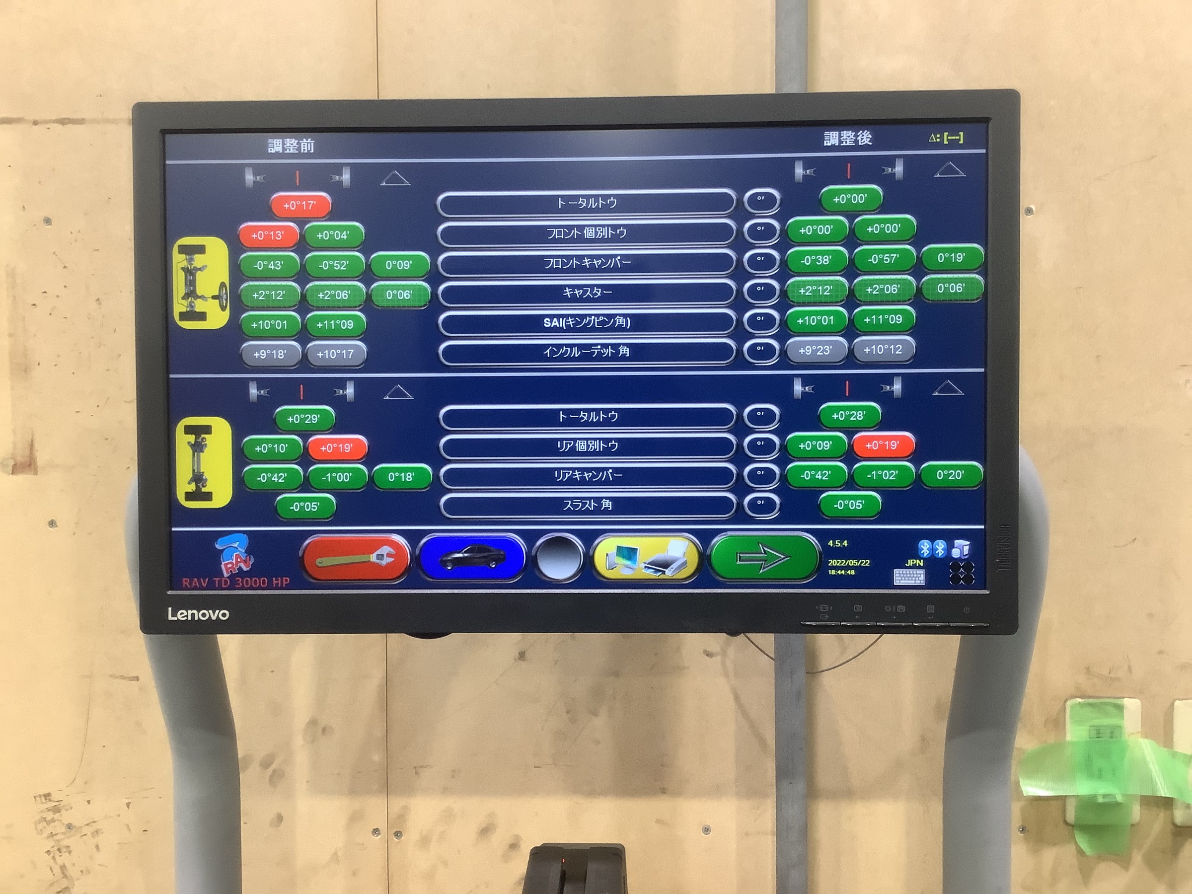 その後、ステアリングを真ん中に固定して測定完了です。