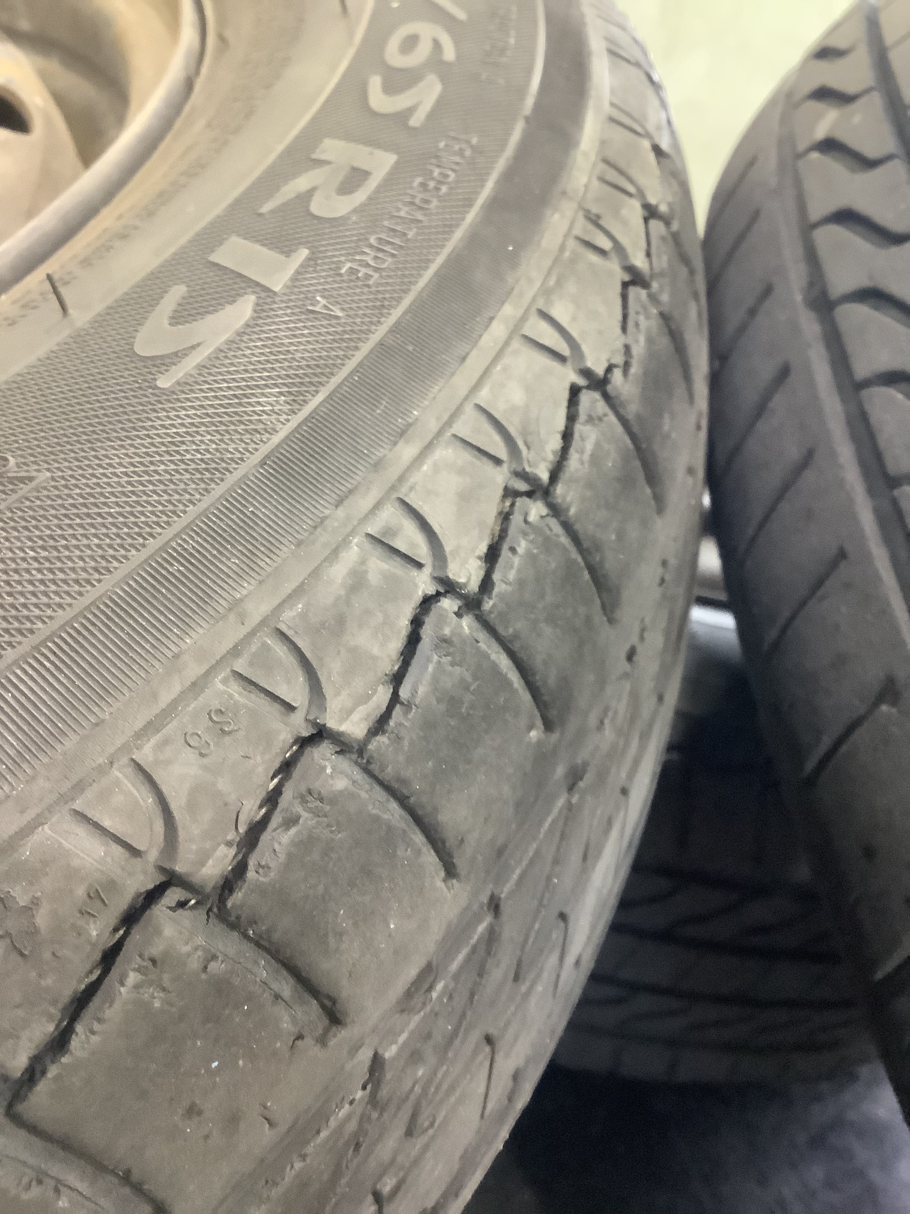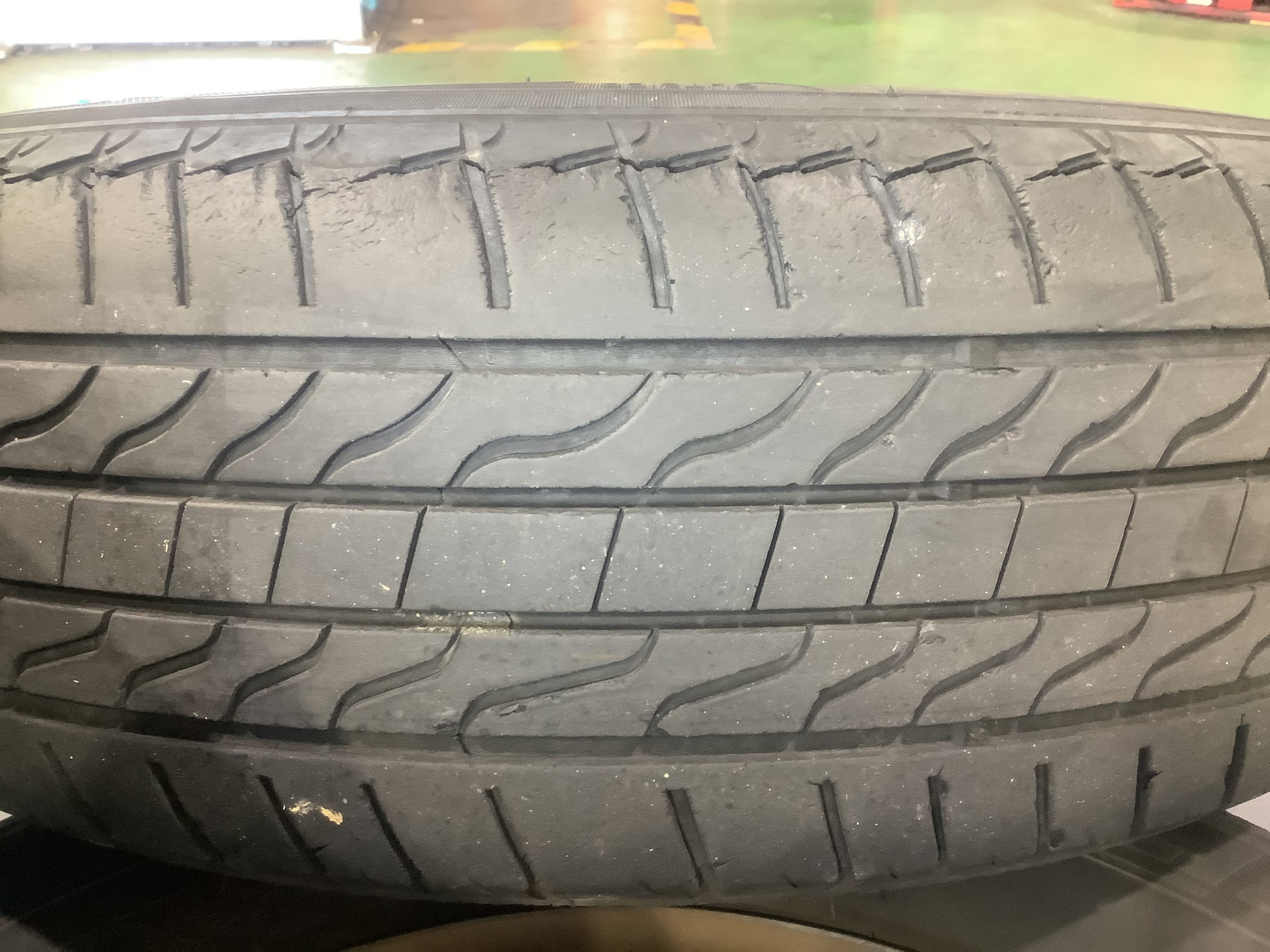 なんか横のひび割れがヒドイ気がしてガソリンスタンドのお兄さんにも