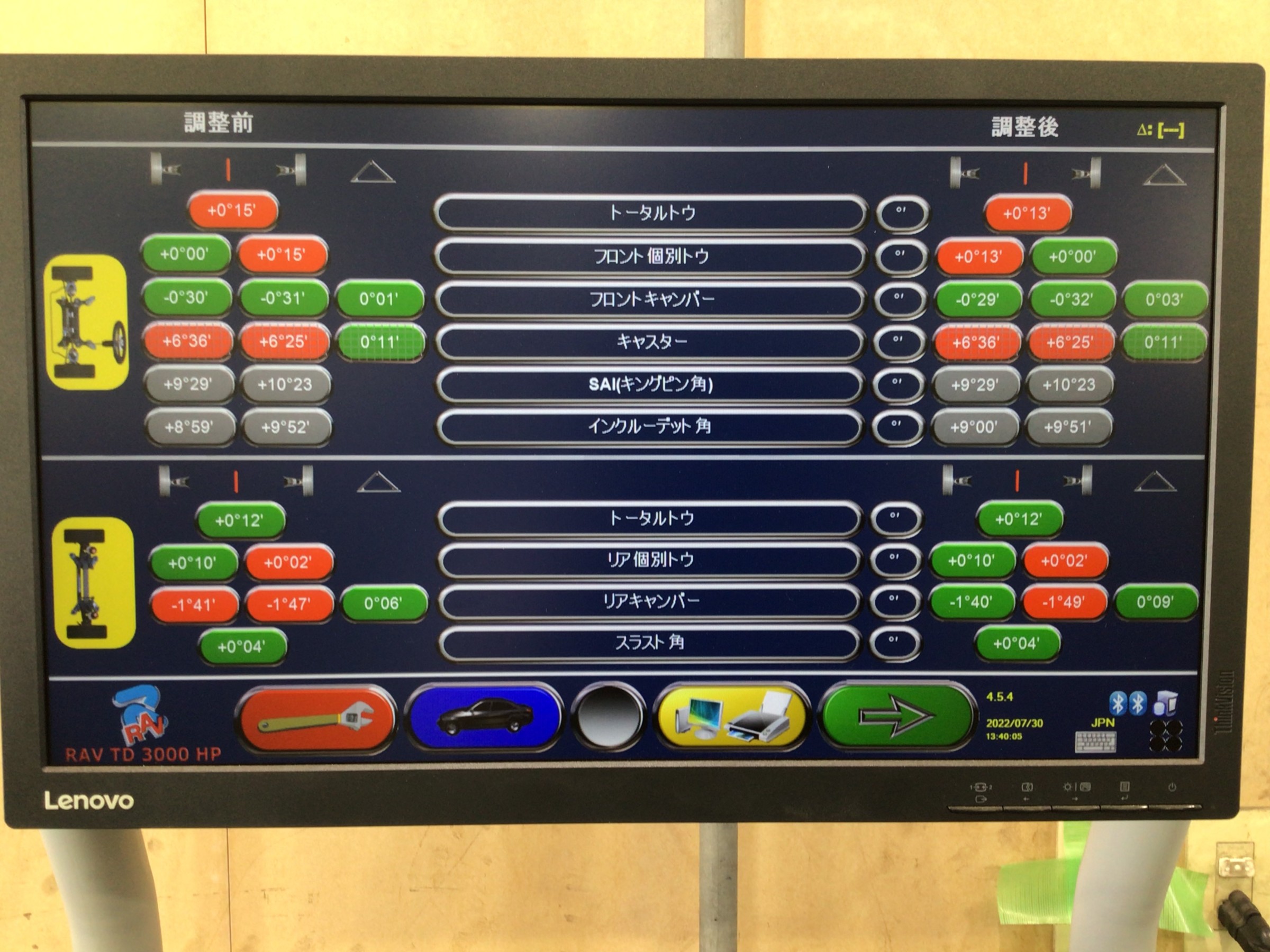 などの心当たりのある方は、タイヤ交換・アライメントの測定・調整をお勧めします!