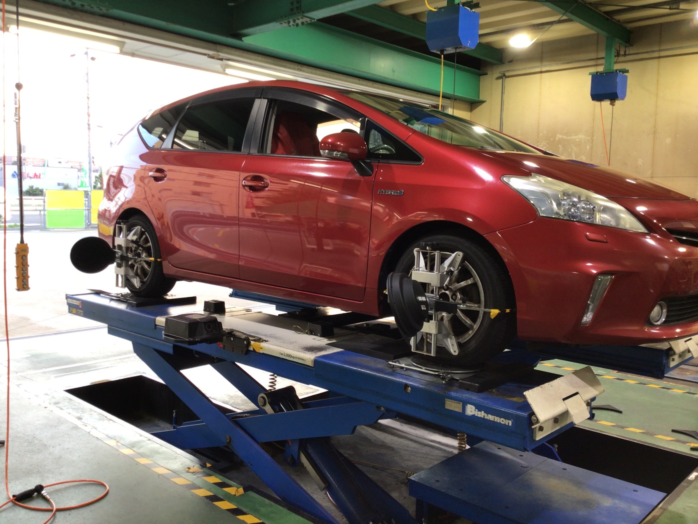 トヨタ プリウスα ダウンサス取付 アライメント調整作業