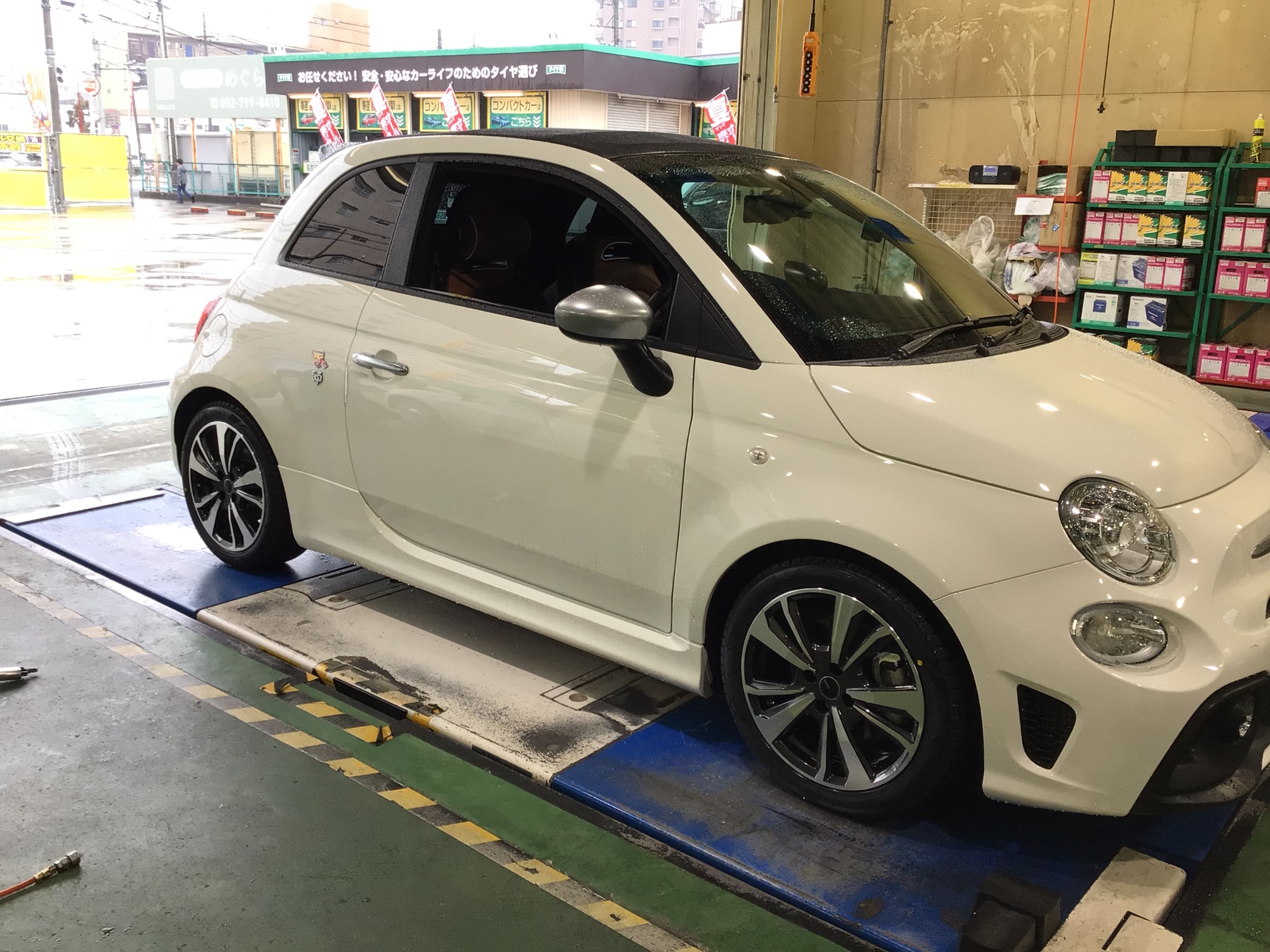 本日は、アバルト 595Cのスタッドレスタイヤホイールセット取付作業のご紹介です!