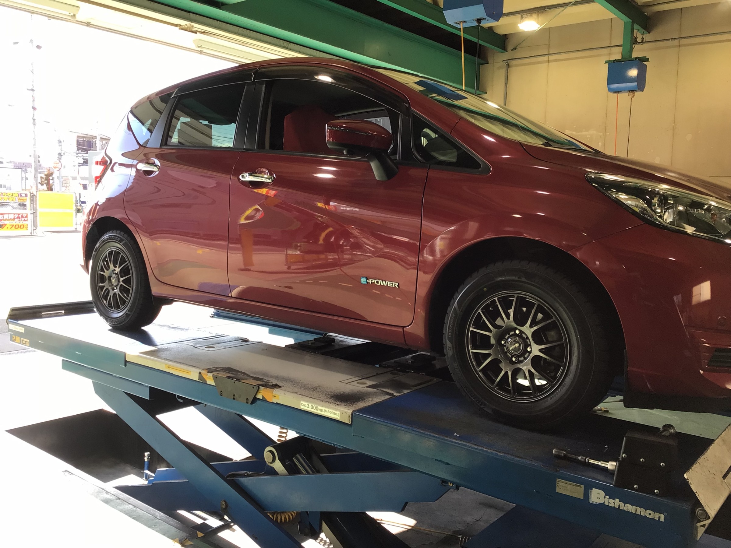 このタイヤを車へ取り付けていきます。