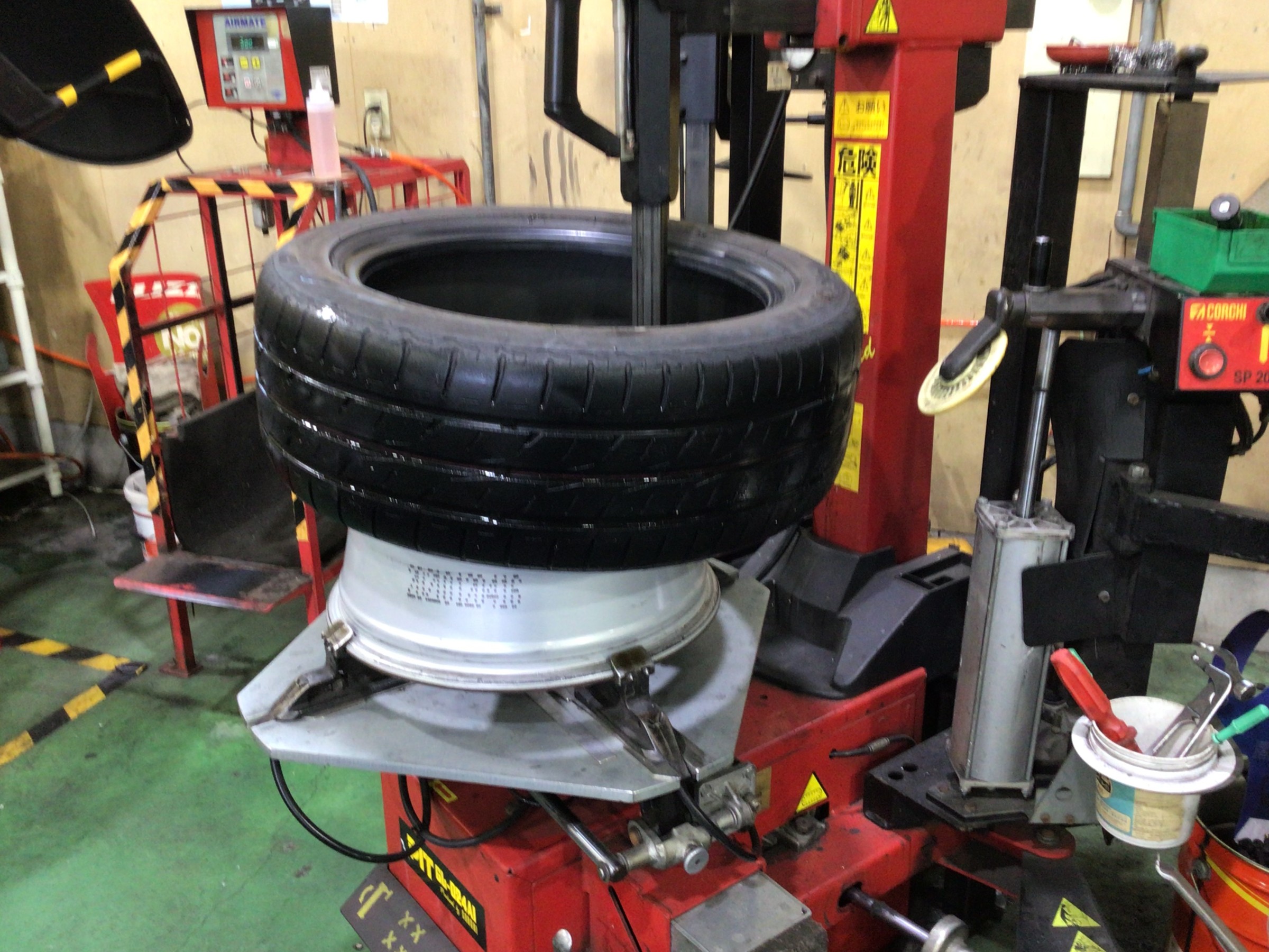 その後はホイールからタイヤを取り外し、新しいタイヤをホイールに組み付けします。