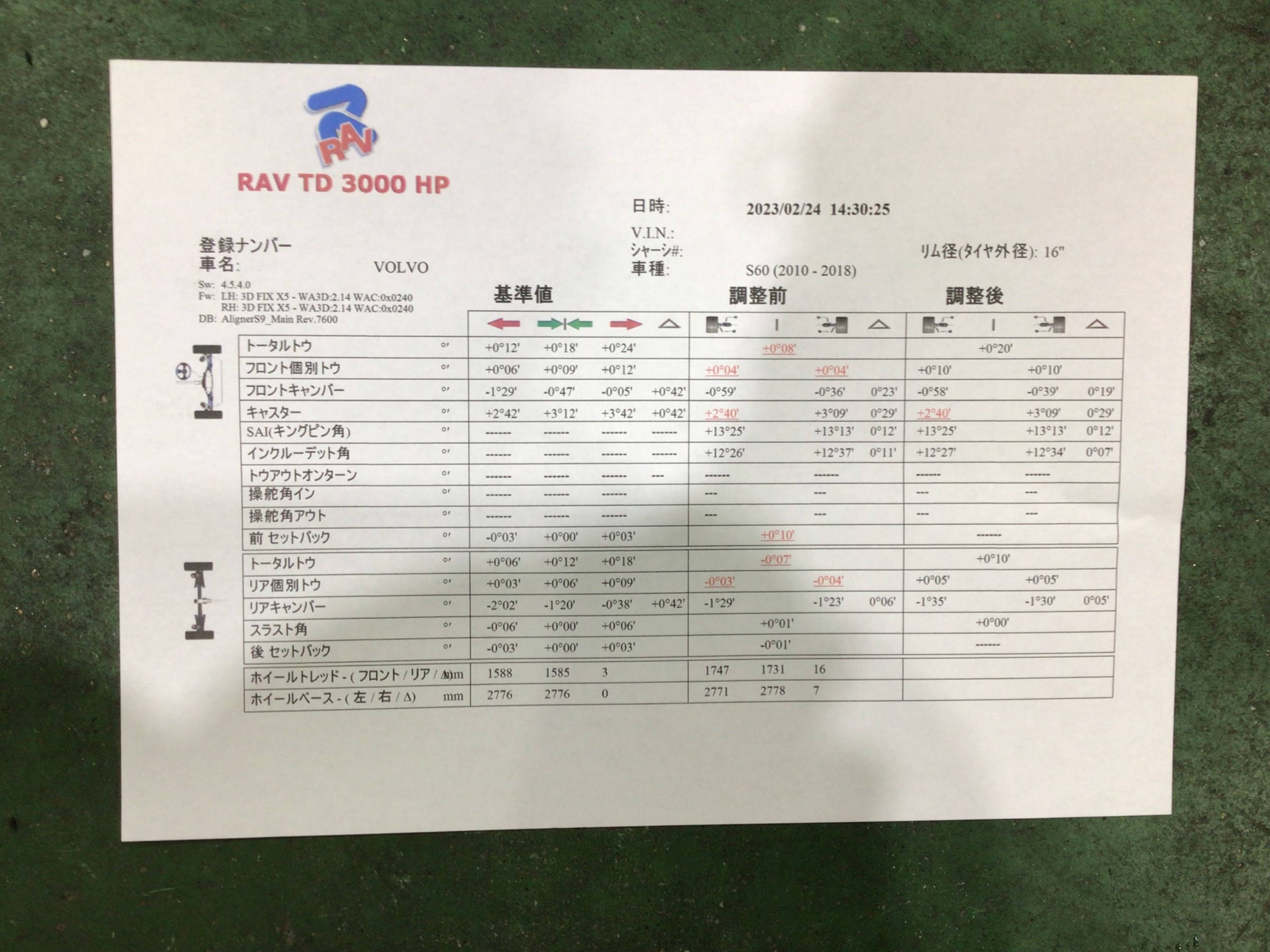 ボルボ V60 ノーマルタイヤ交換&アライメント調整作業