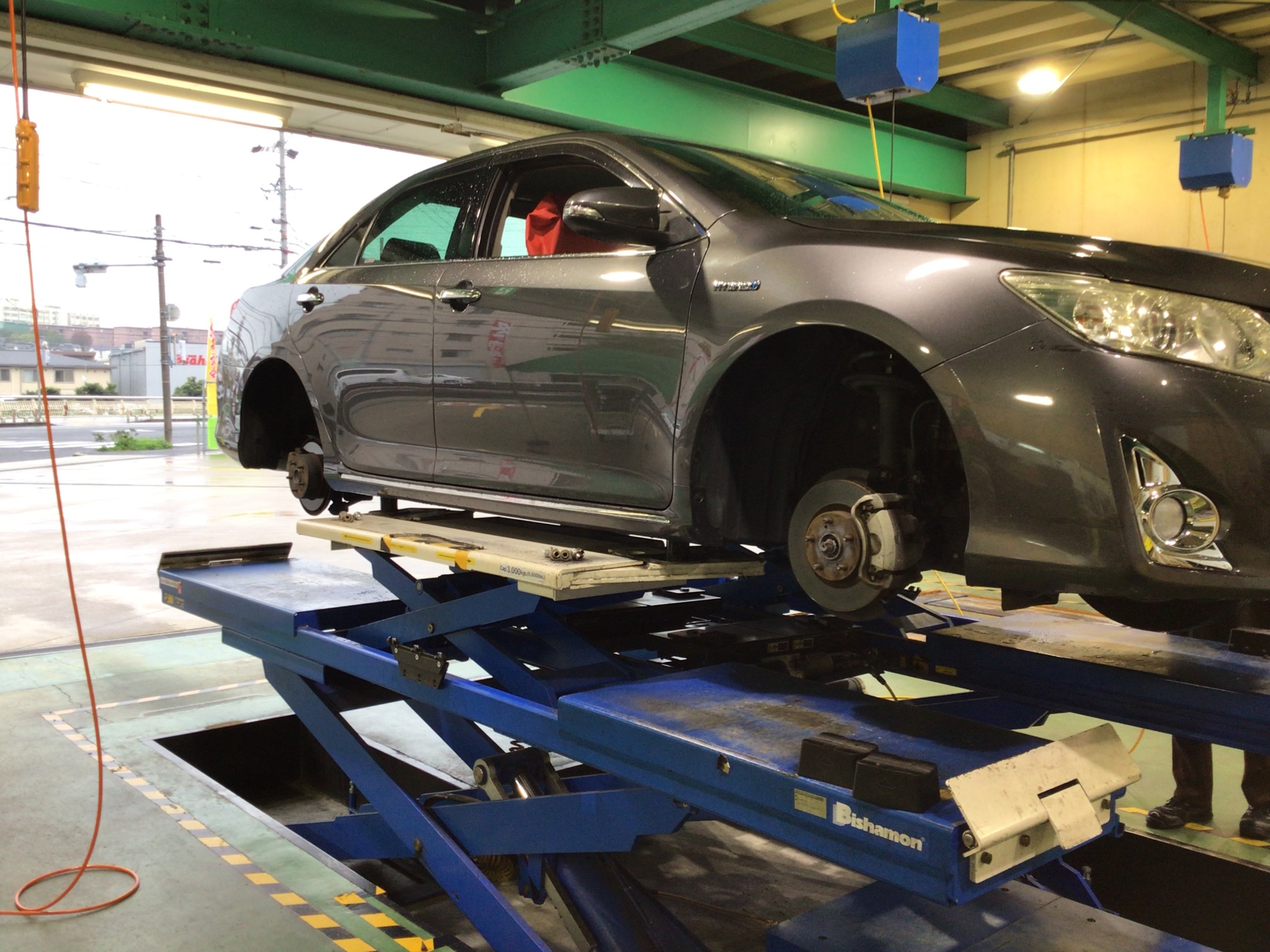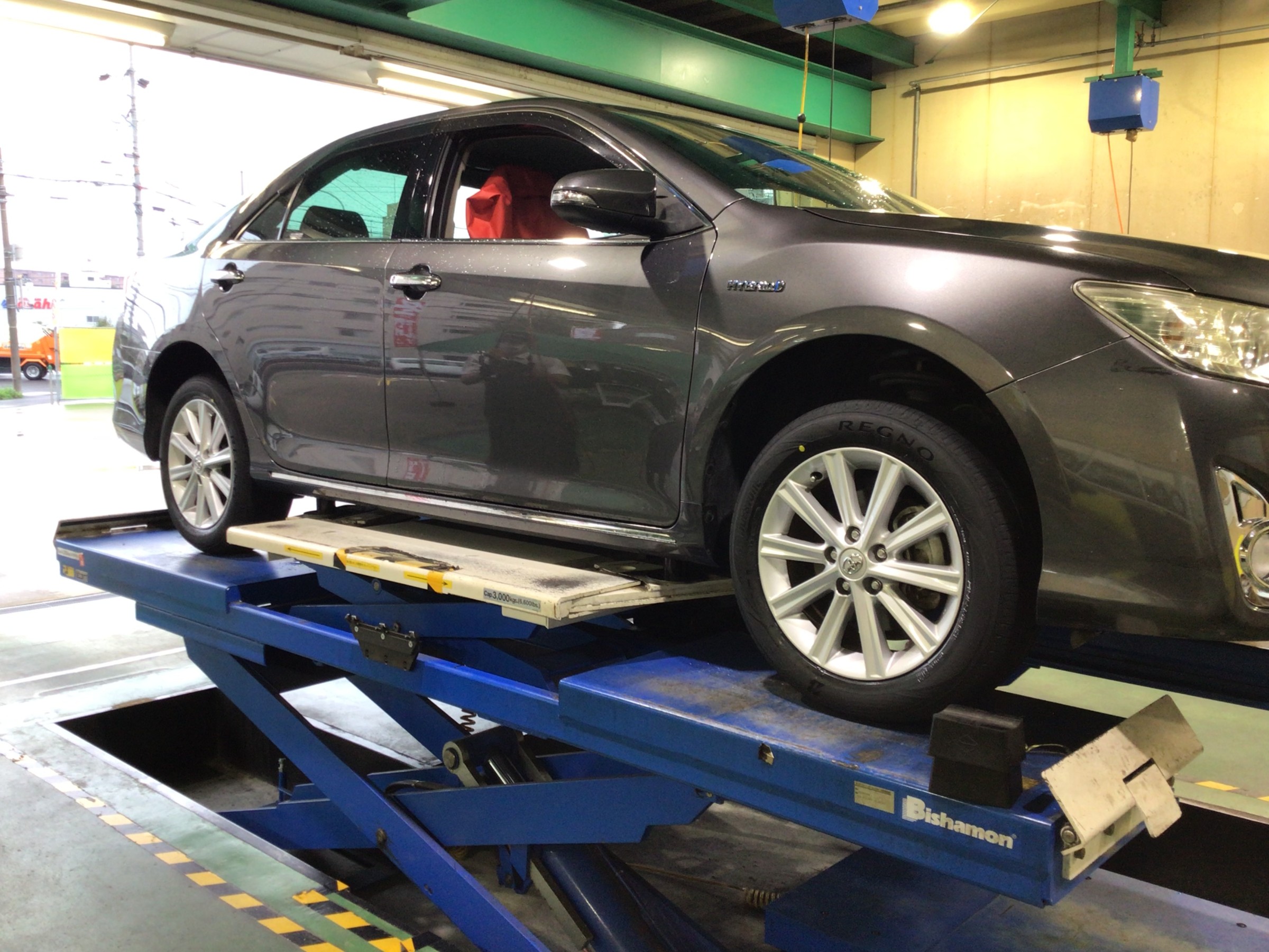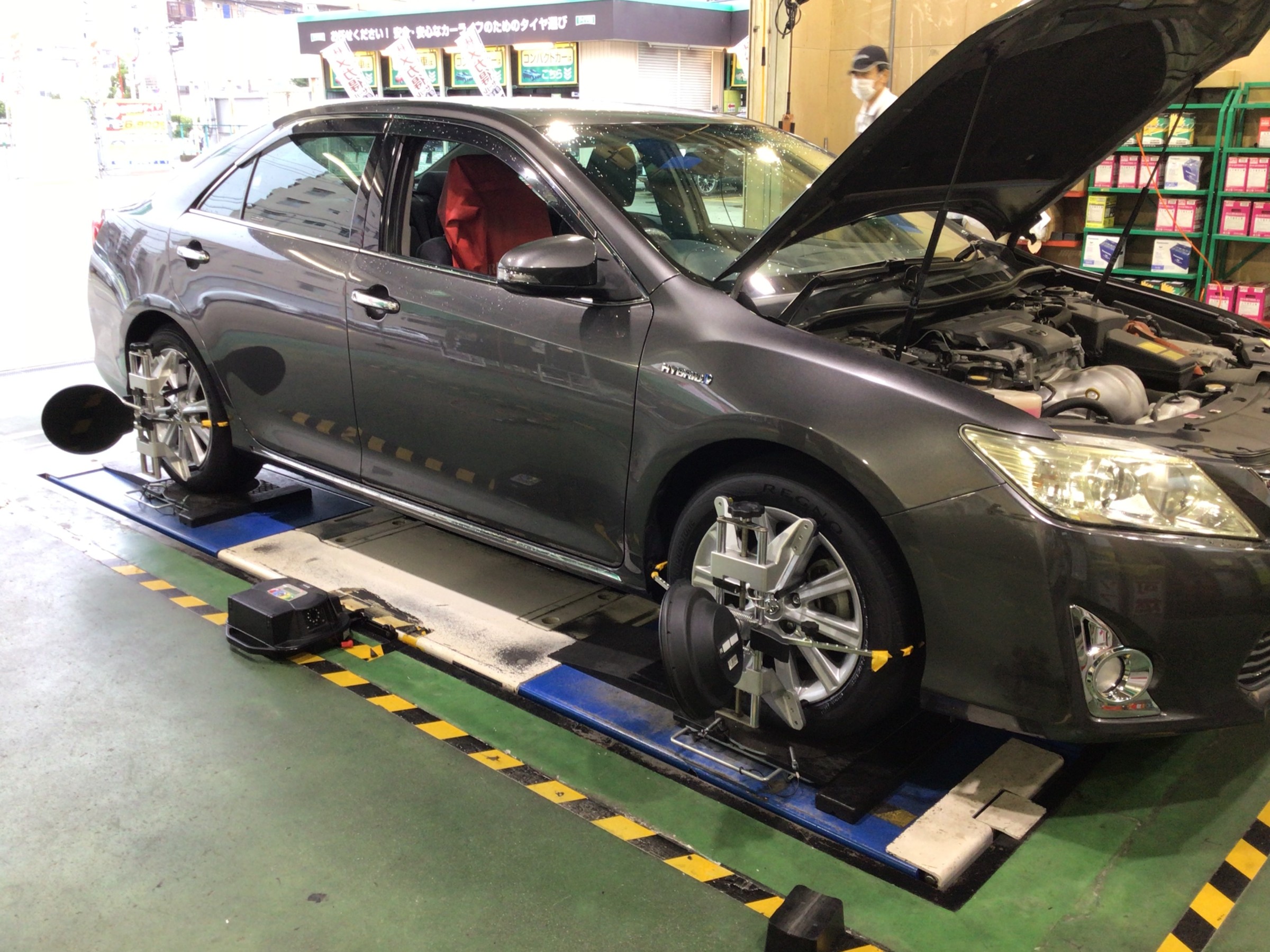 本日は、トヨタ カムリHV のタイヤ交換・アライメント調整作業のご紹介です!