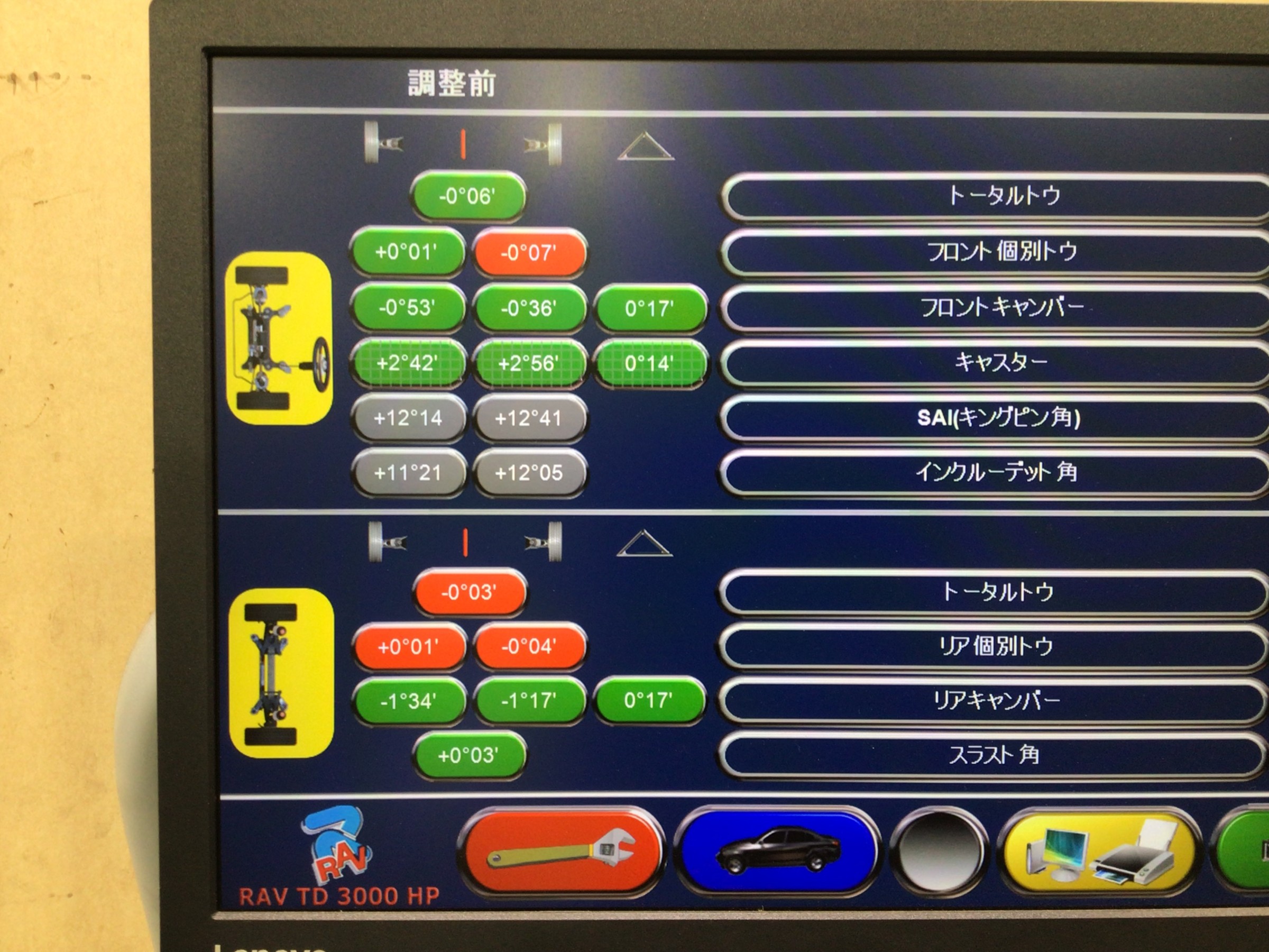 その後、ステアリングを真ん中に固定して測定完了です。