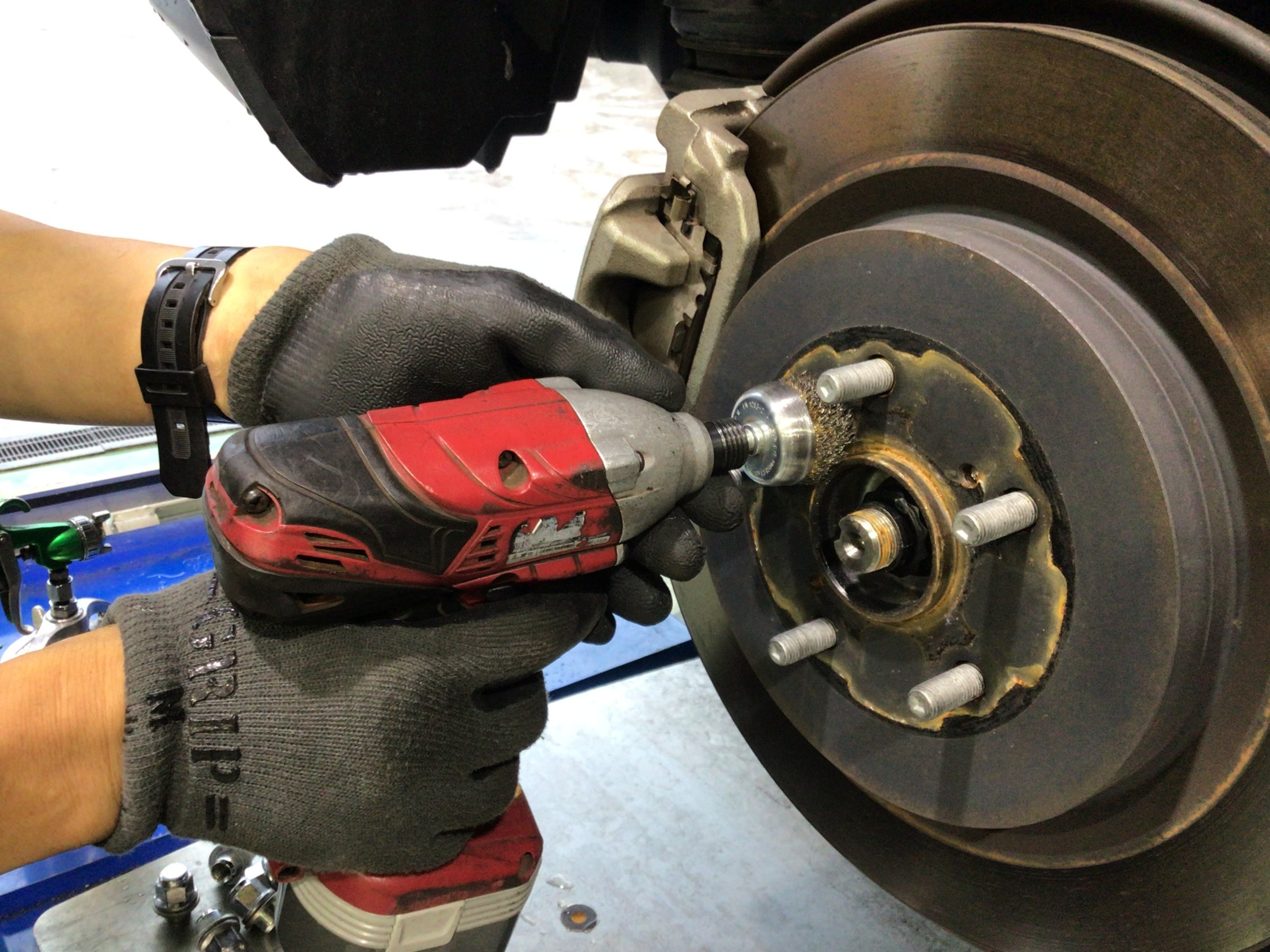 お車のハブ部分(車側の取付面)を磨き、防錆のコーティングをしていきます。