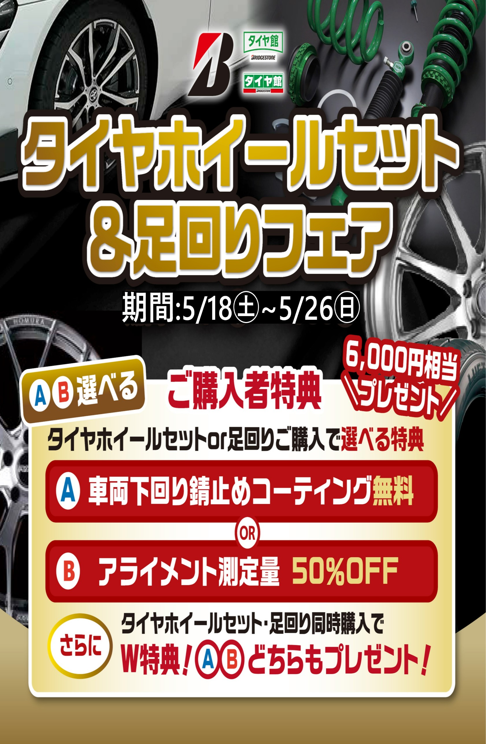 【お知らせ】5/18(土)~5/26(日) タイヤホイールセット&足回りフェア開催決定!!