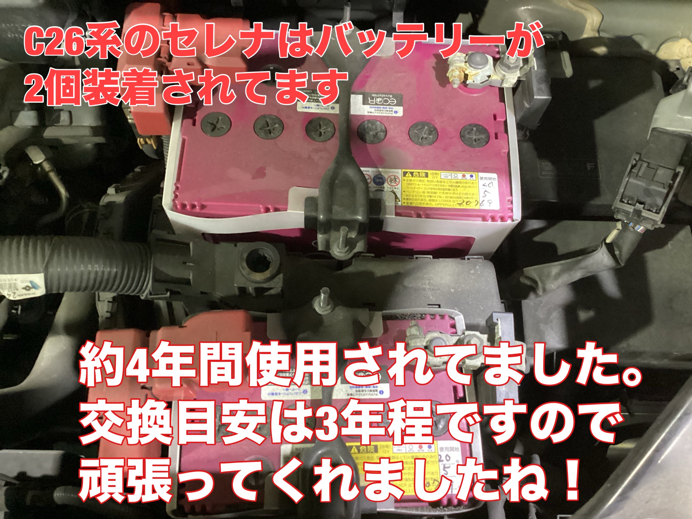 本日は、日産セレナ C26系 のバッテリー交換作業のご紹介です!