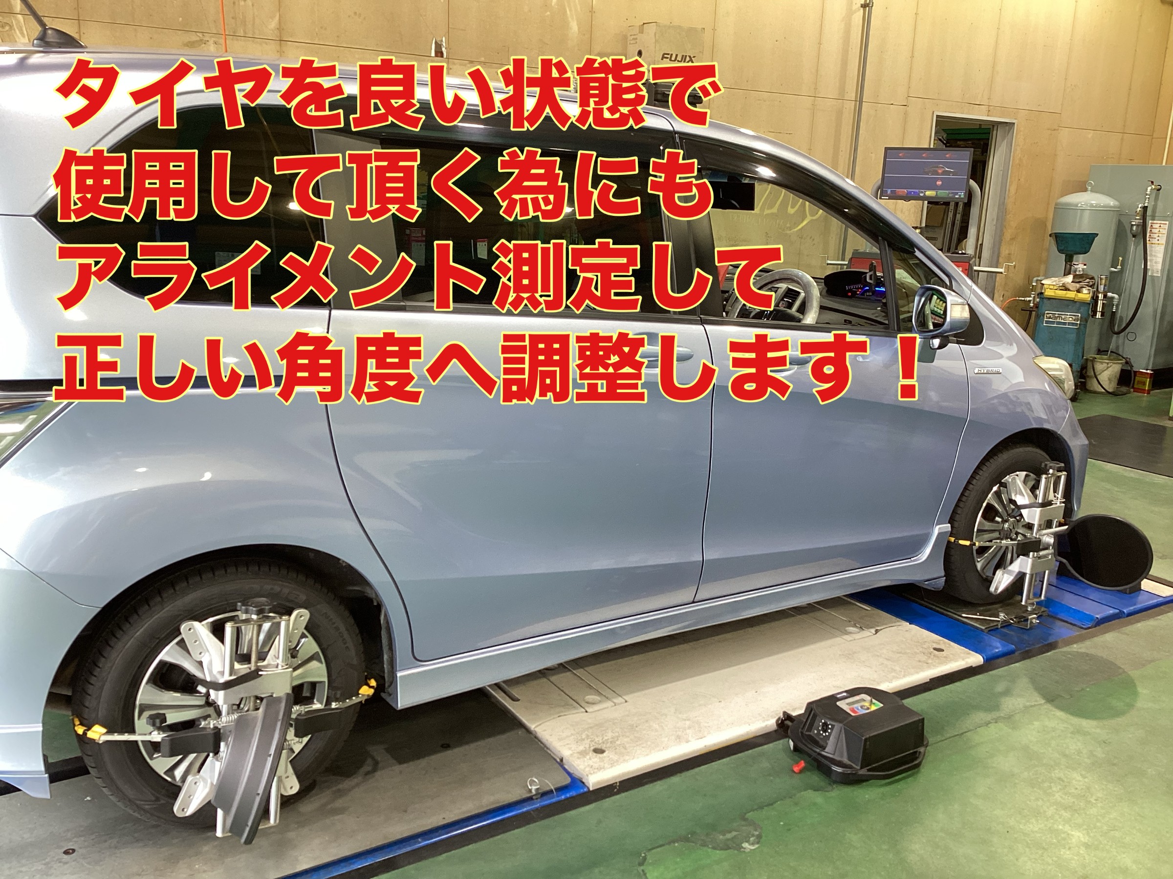 本日はタイヤ交換・アライメント調整作業の