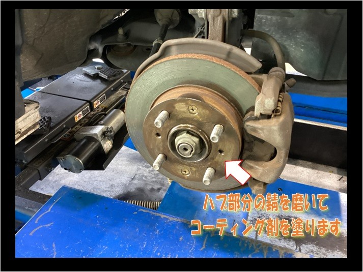 タイヤ交換の際はハブの部分の錆止めも行います。