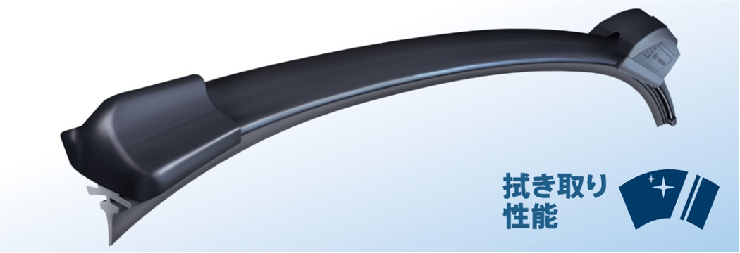 カーブを描くストリップ形状により、ワイパーブレードの接合部を無くしたフラットなフォルムを採用。フロントガラスへ圧力が均一に伝わるため、フロントガラス上の水滴を常に綺麗に拭き取ります。