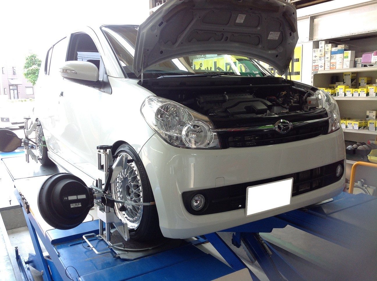 ミラ アライメント作業 ポスト 2020年6月20日 本日はミラカスタムのアライメント調整を行いました。 以前にリアサスの独立化を行っているので純正では出来ない リアのトゥとキャンバー調整も可能です。 4輪ともいい状態に調整できました。