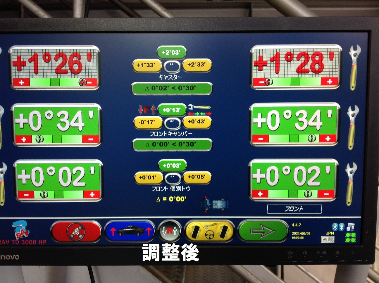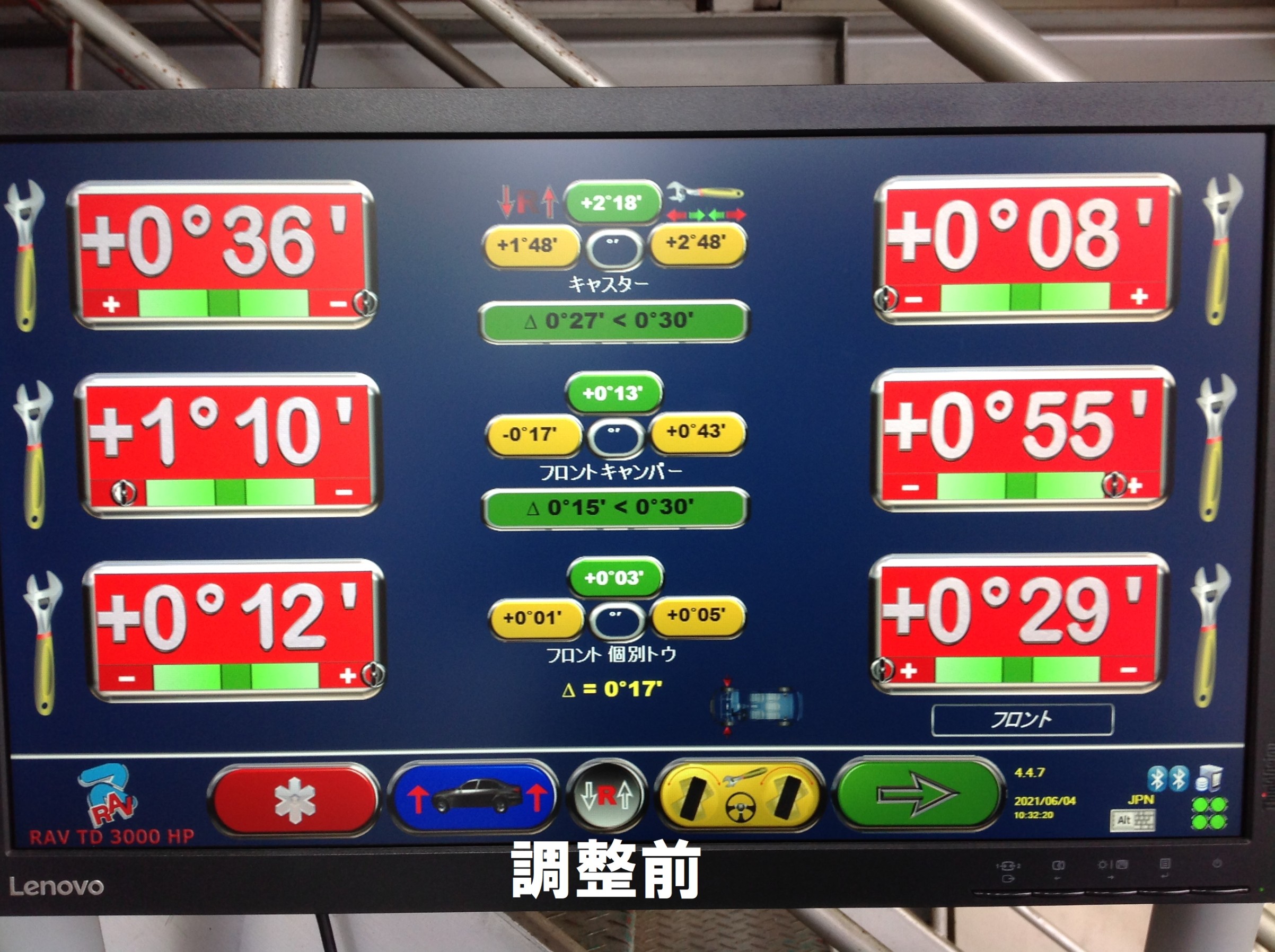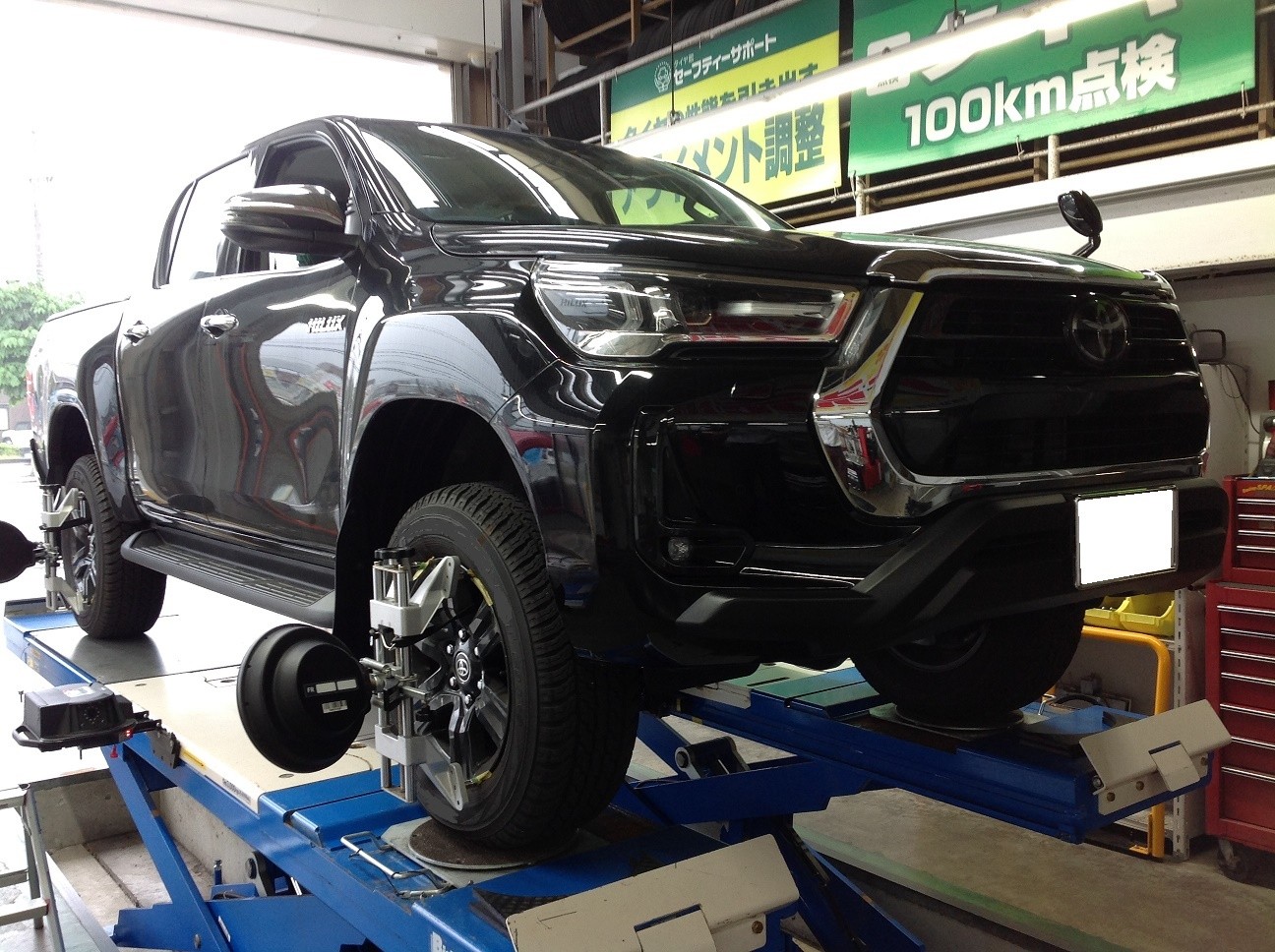 ハイラックス アライメント ポスト 2021年6月13日 本日は、ハイラックスのリフトアップ車両をアライメント調整しました。 JAOS製BATTLEZリフトアップサス BATTLEZリフトアップセット キャスター・キャンバー角が大きくずれているので できるだけ基準値近くになるように調整しました。