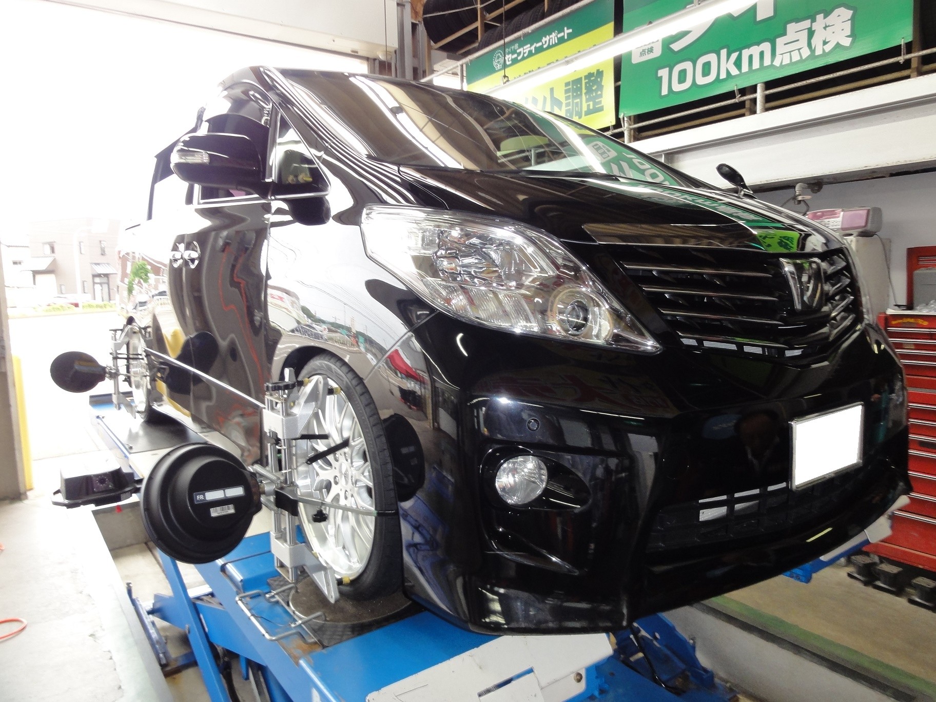 アライメント ポスト 2022年5月15日 本日のアライメント調整は30ヴェルファイアと20アルファードの2台です。 30ヴェルファイアの方は車高調から純正に戻しての調整です。 純正の値に調整して終了です。 20アルファードはタイヤの内減りが出るということでアライメント調整いたしました。 大きく車高が下がっている車両は完全に内減りを消すことは出来ませんが 最大限抑える方向に調整いたします。