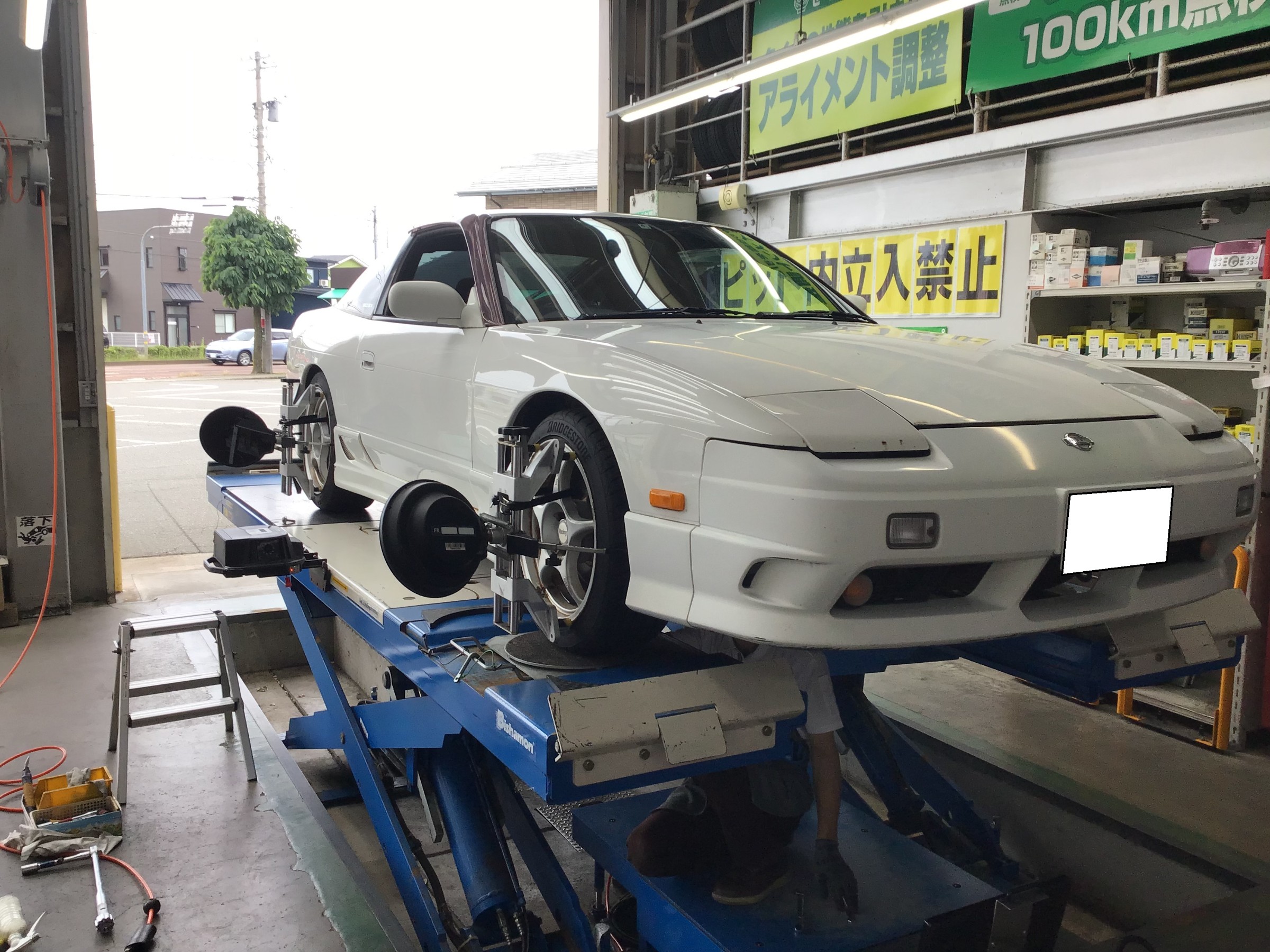 『今日のアライメント』 ポスト 2023年5月20日 本日もタイヤ館金沢東のHPをご覧いただきありがとうございます! 最近ほんとに暑いですね… 今日の作業は【日産 180SX】のアライメントです! 作業依頼ありがとうございました!!