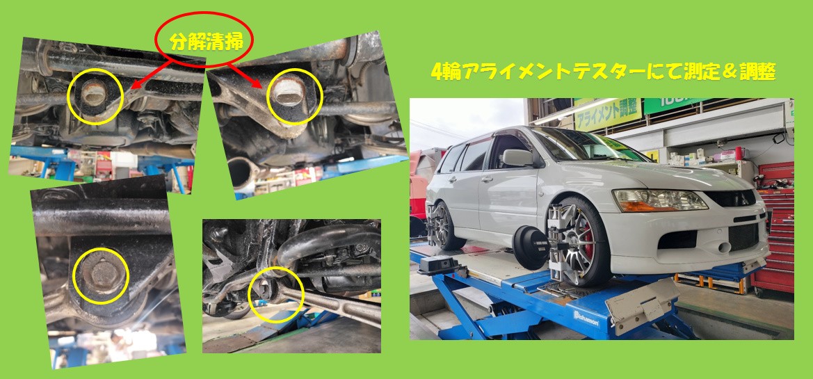 本日は、三菱 ランサーエボリューションワゴンに車高調整キットの取付作業です!