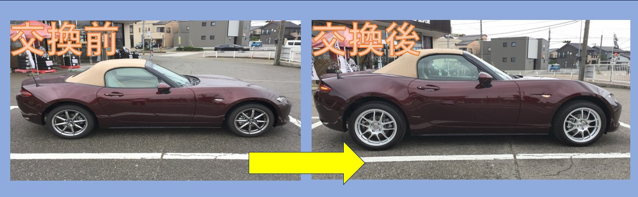 純正ホイールからエンケイのホイールへの交換前と交換後