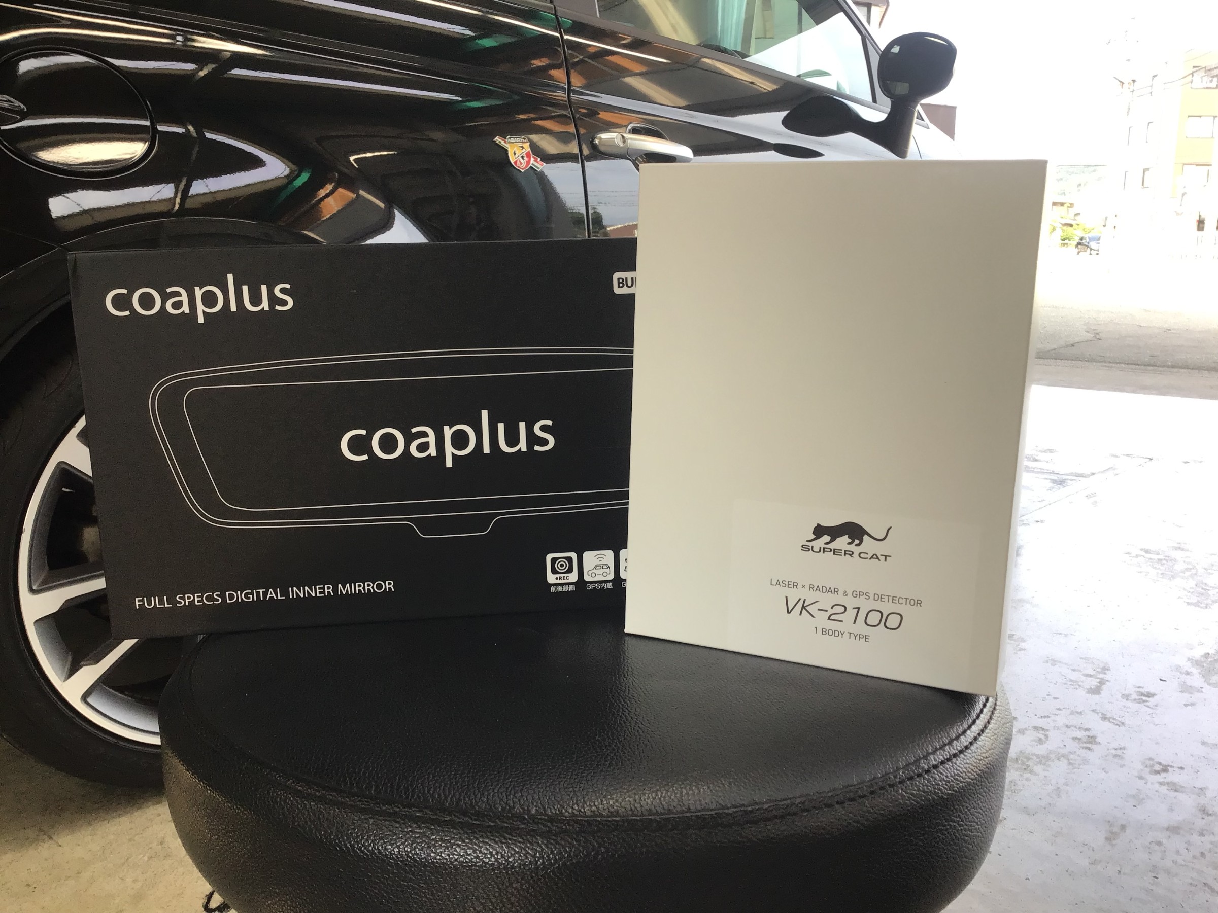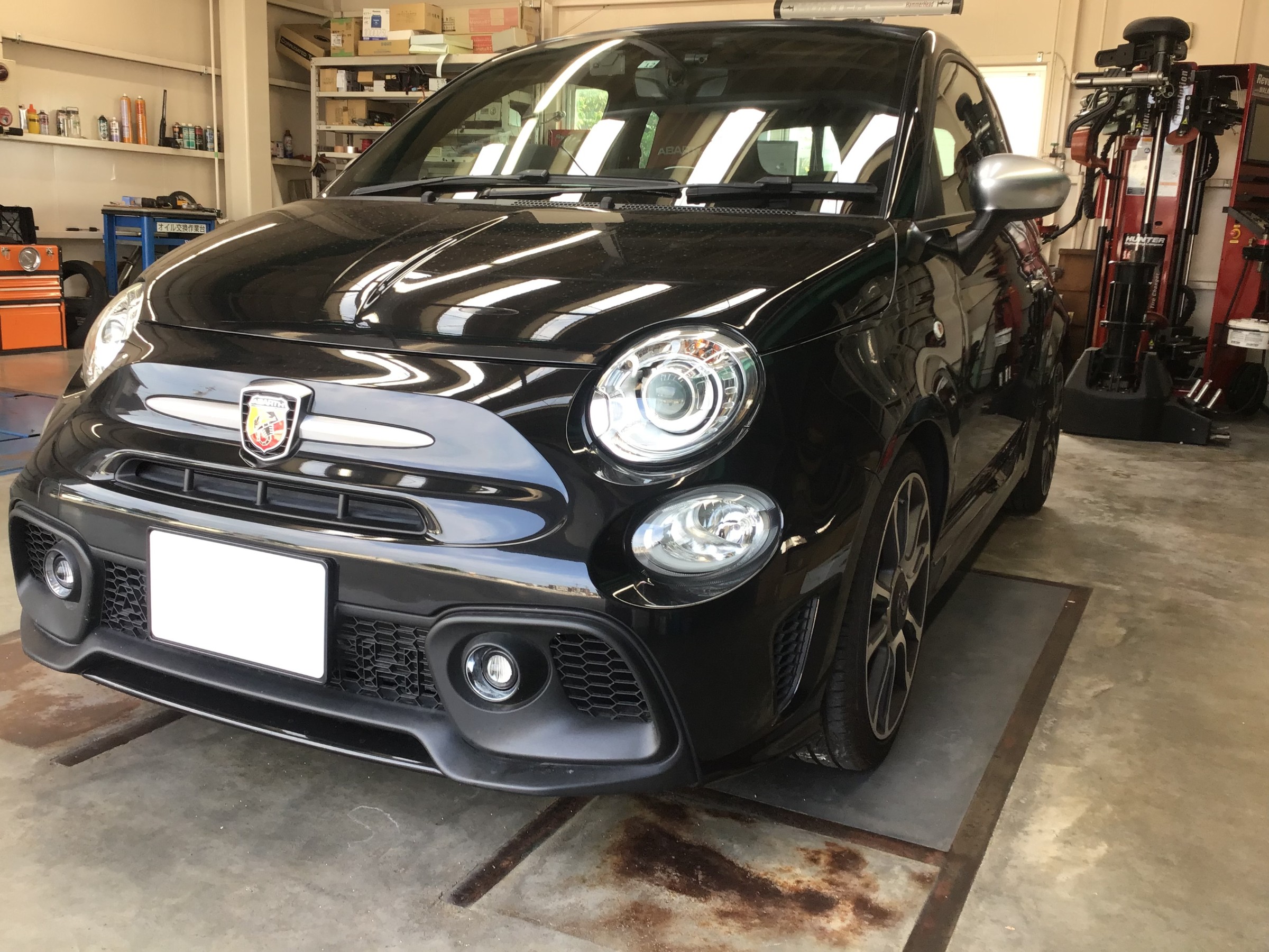 今日の作業は アバルト595C 前後ドラレコ,レーダー探知機取付です!