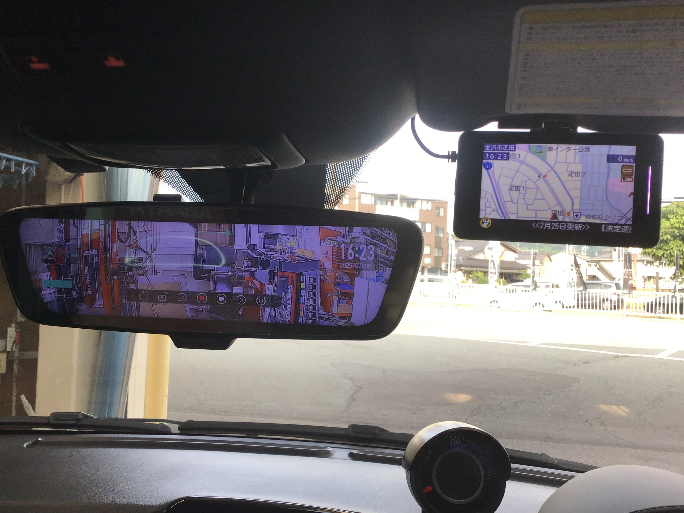 レーダー探知機はフロントガラス吊り下げ方式で取付しました。