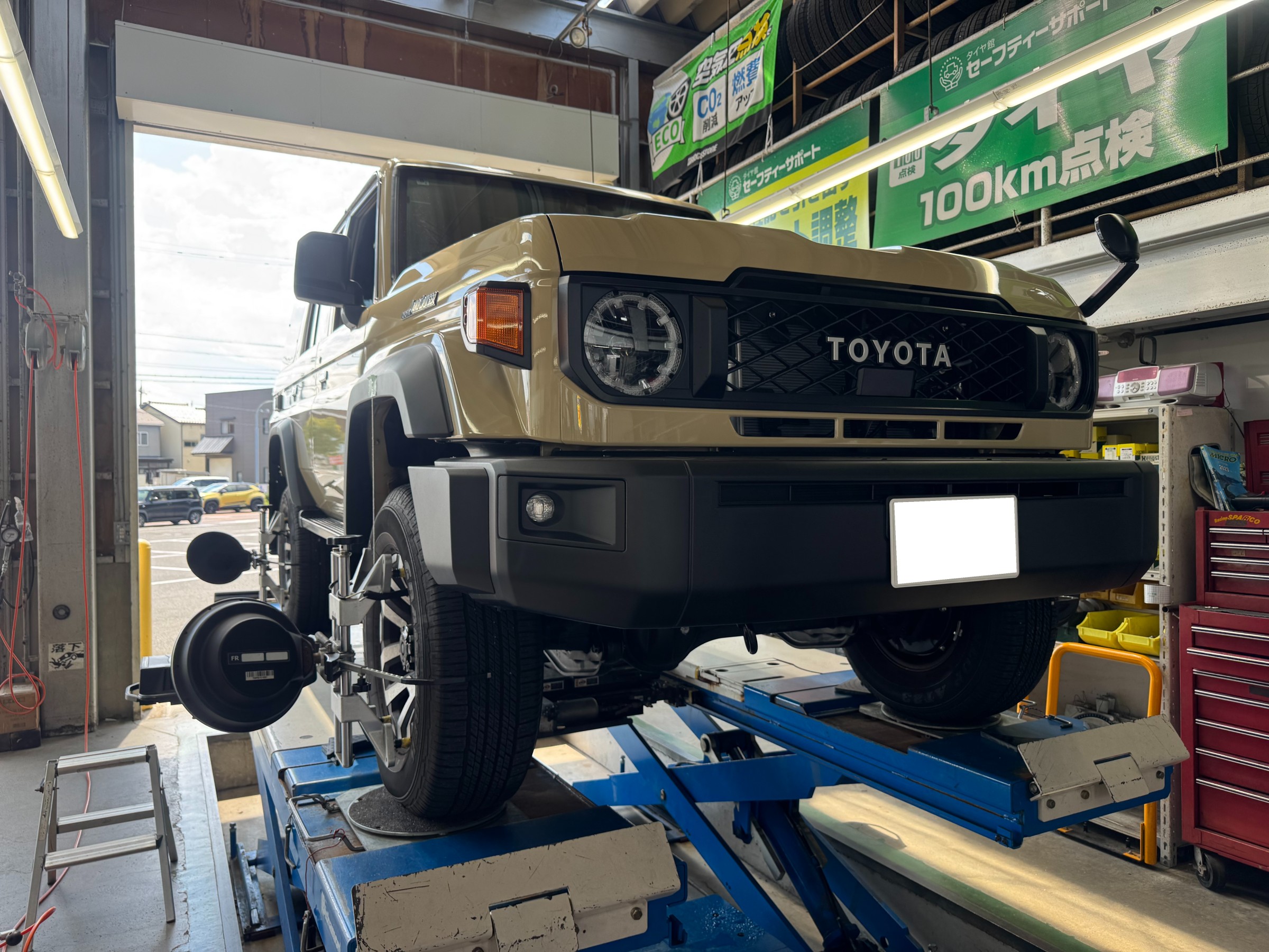 本日の作業は70ランクルのアライメント調整です!