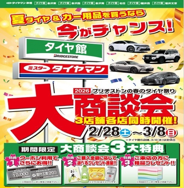 2026年2月28日(土)より! 春のタイヤ祭り『大商談会』開催します!