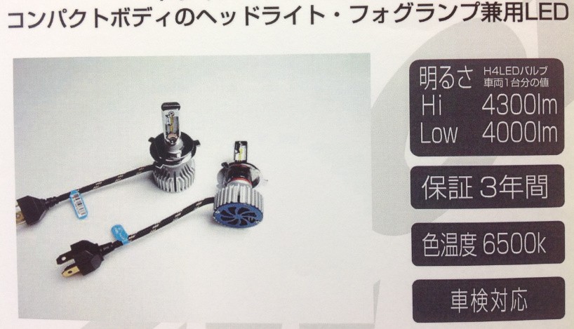 (色温度6500ケルビン、明るさ4000ルーメン(H4 Hi 4300 lm,Lo 4000 lm))