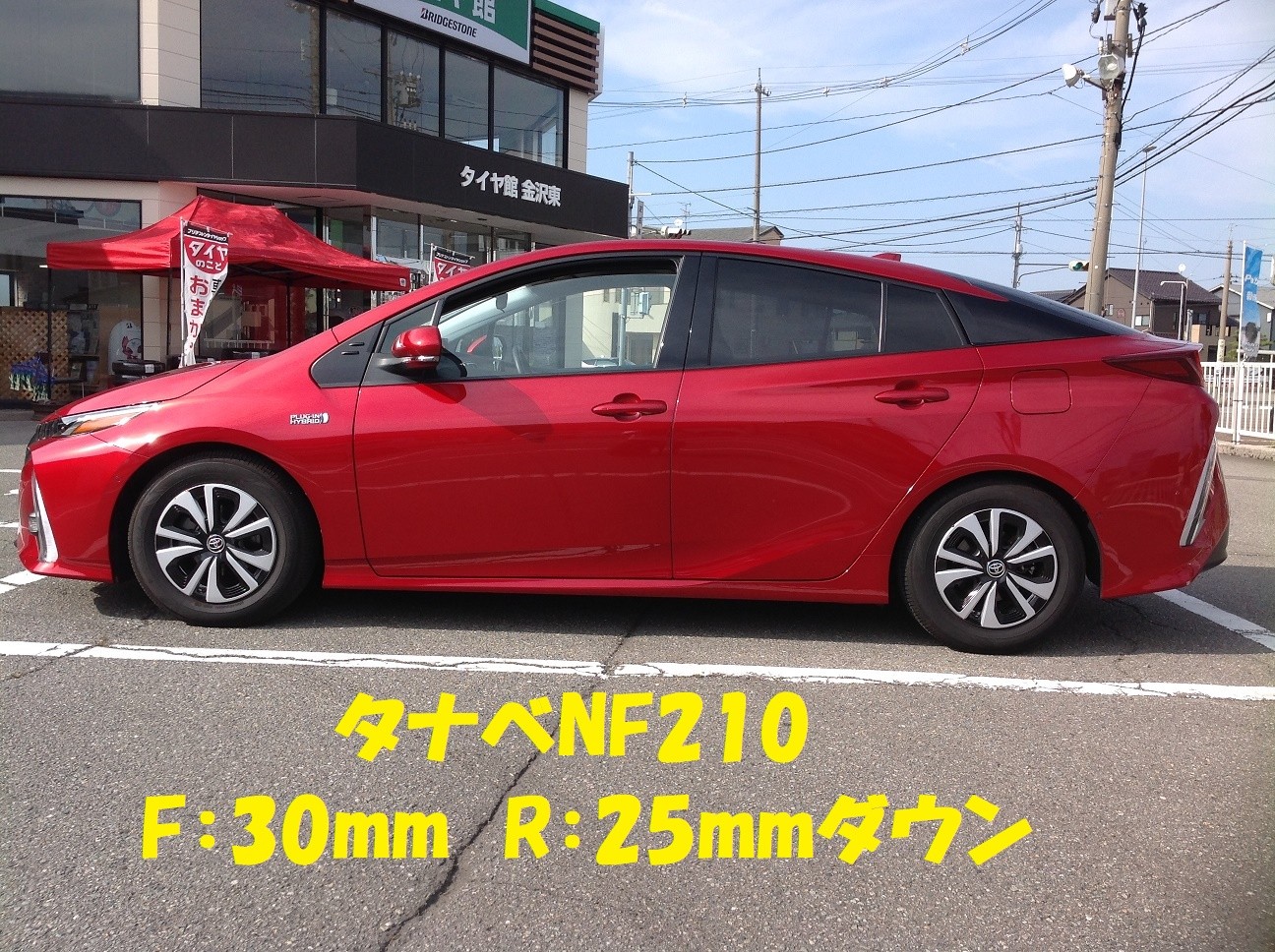 プリウスPHV ローダウン ポスト 2020年6月4日 本日の作業はプリウスPHVにタナベダウンサス『NF210』の取付です。 カラーがボディと同色の赤色というのがこのスプリングを選んだ決め手だそうです。 ダウン量もほどほどで乗り心地のいいスプリングです。 ついでに空気圧センサーTPMS『B-11』も取付しました。 シフトノブの下側に違和感なく付きました。