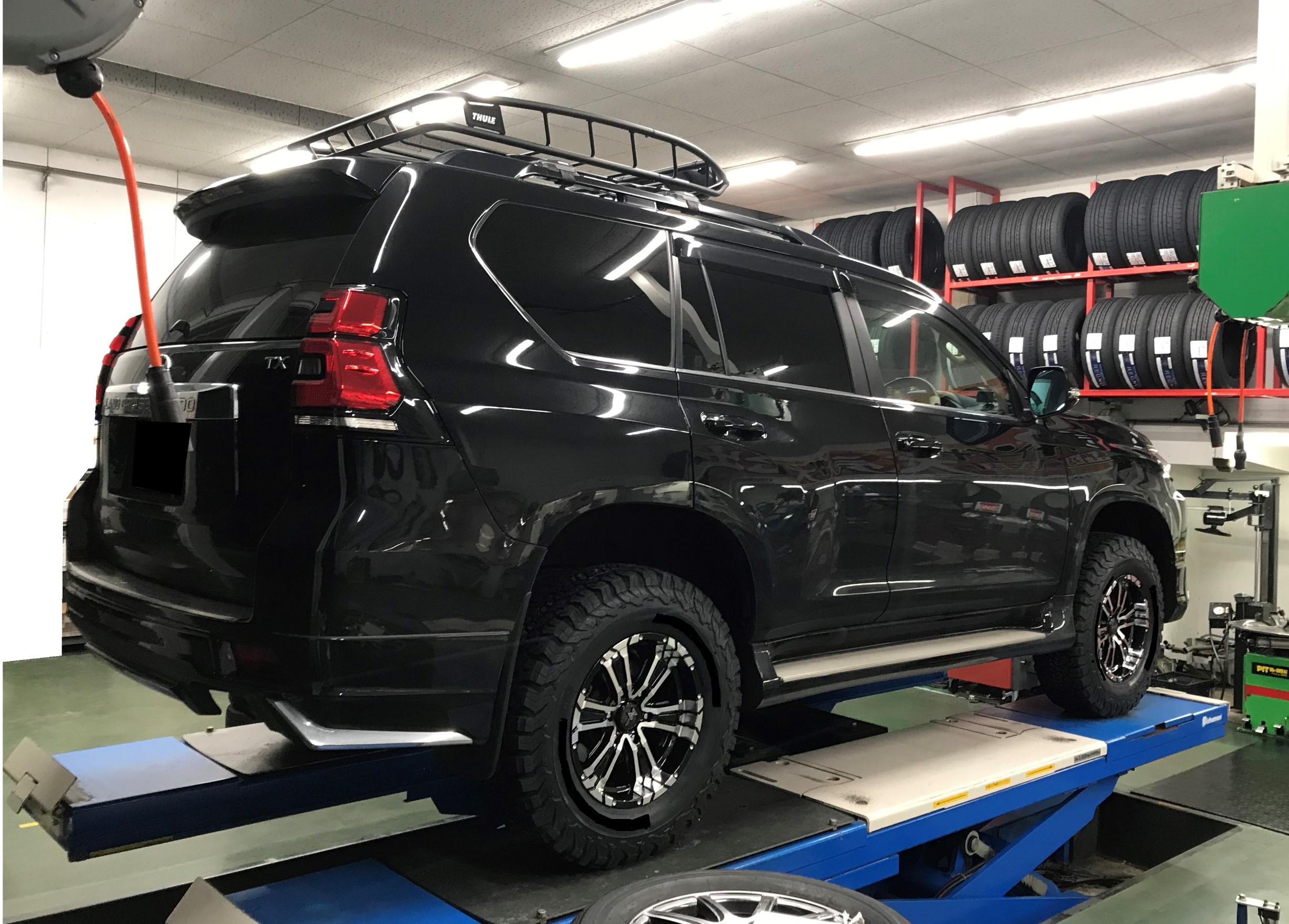 本日は「ランドクルーザープラド」のリフトアップ作業です。